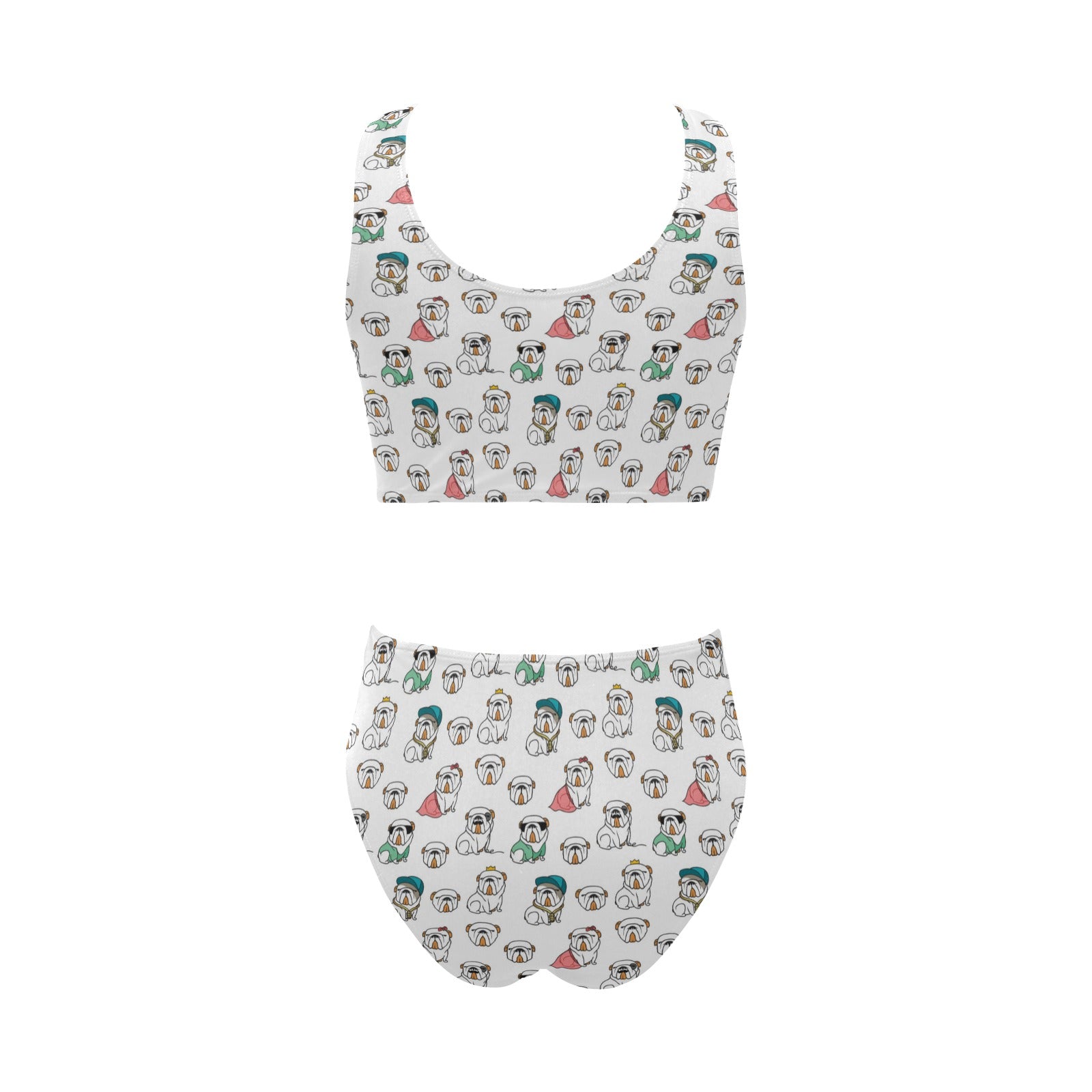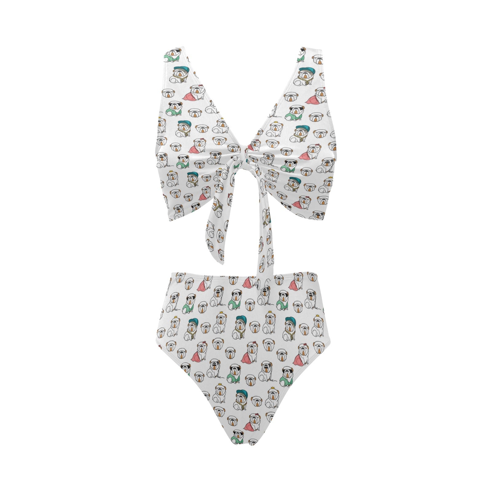 English Bulldog Pattern Print Design 03 Chest Bowknot High Waisted Bikini Swimsuit