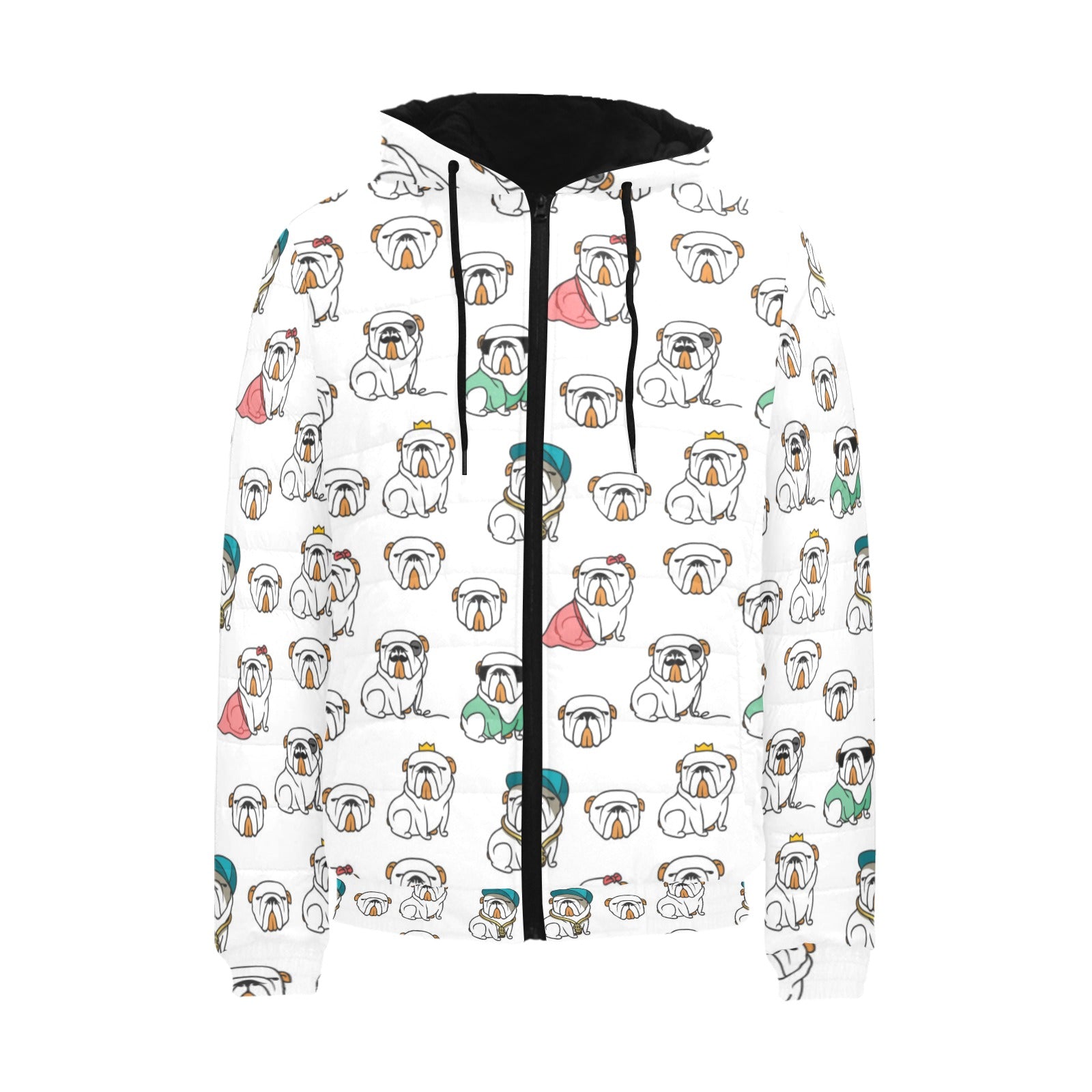 English Bulldog Pattern Print Design 03 Men's Padded Hooded Jacket