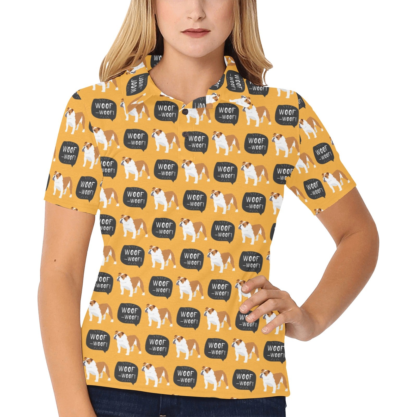 English Bulldog Pattern Print Design 04 Women's All Over Print Polo Shirt