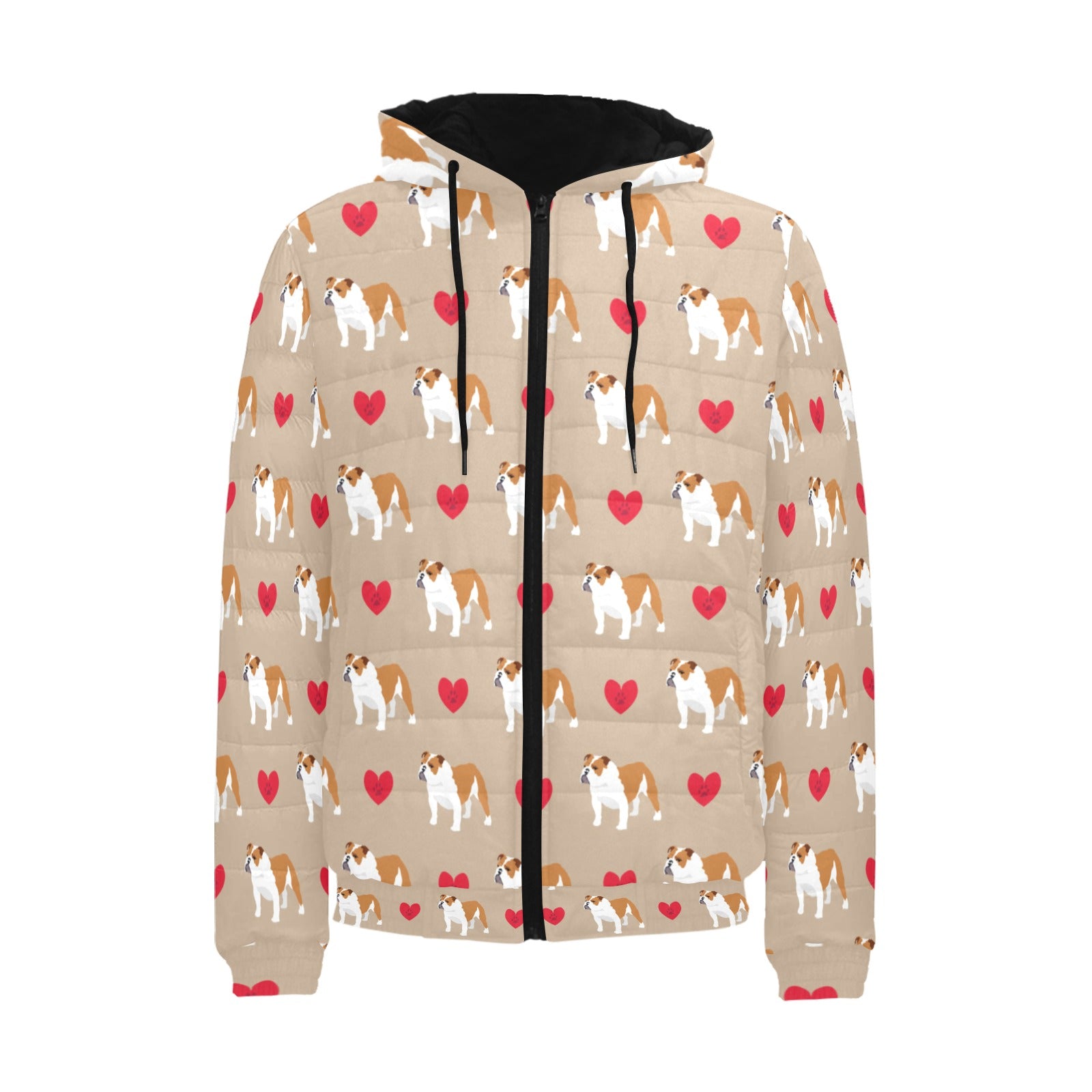 English Bulldog Pattern Print Design 05 Men's Padded Hooded Jacket