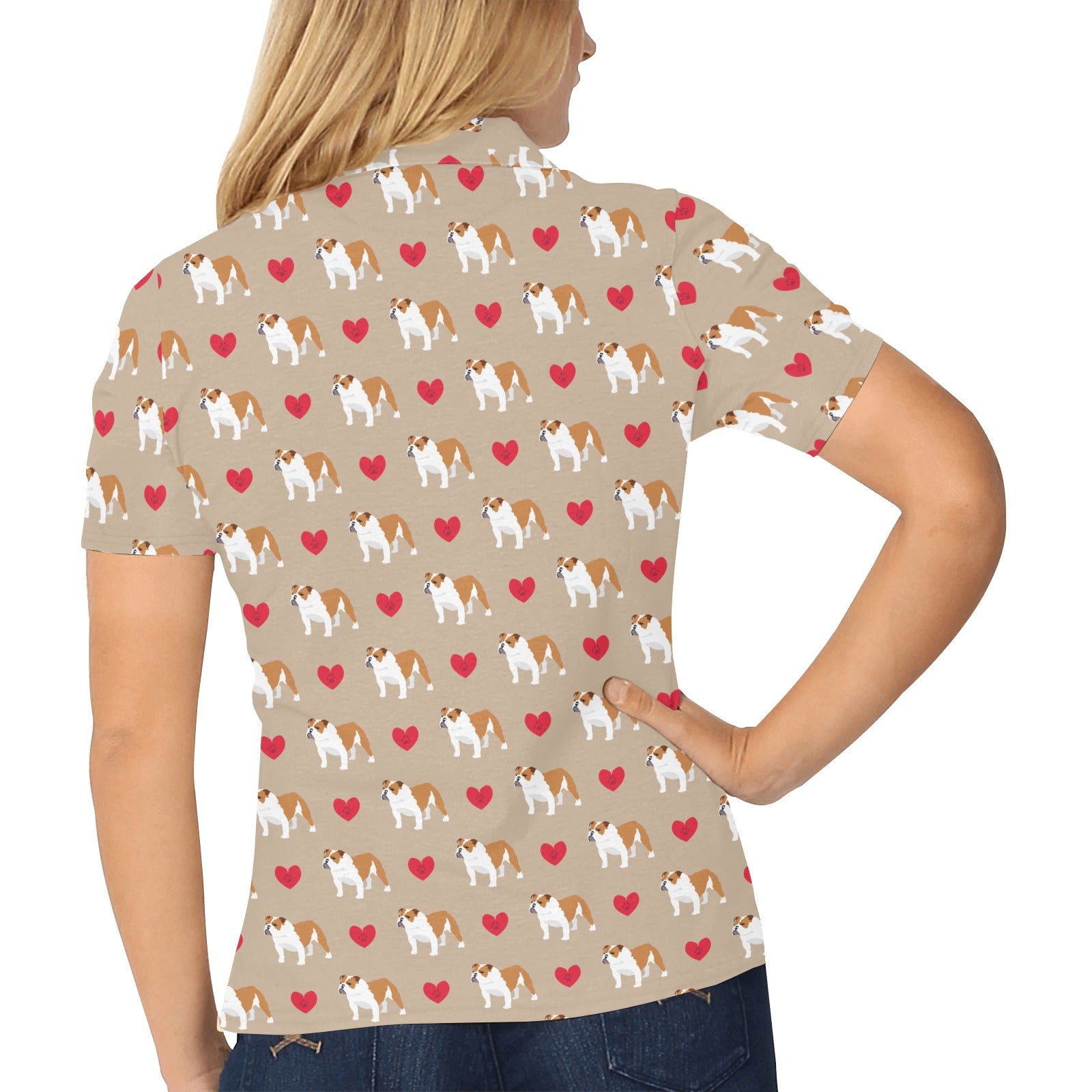 English Bulldog Pattern Print Design 05 Women's All Over Print Polo Shirt
