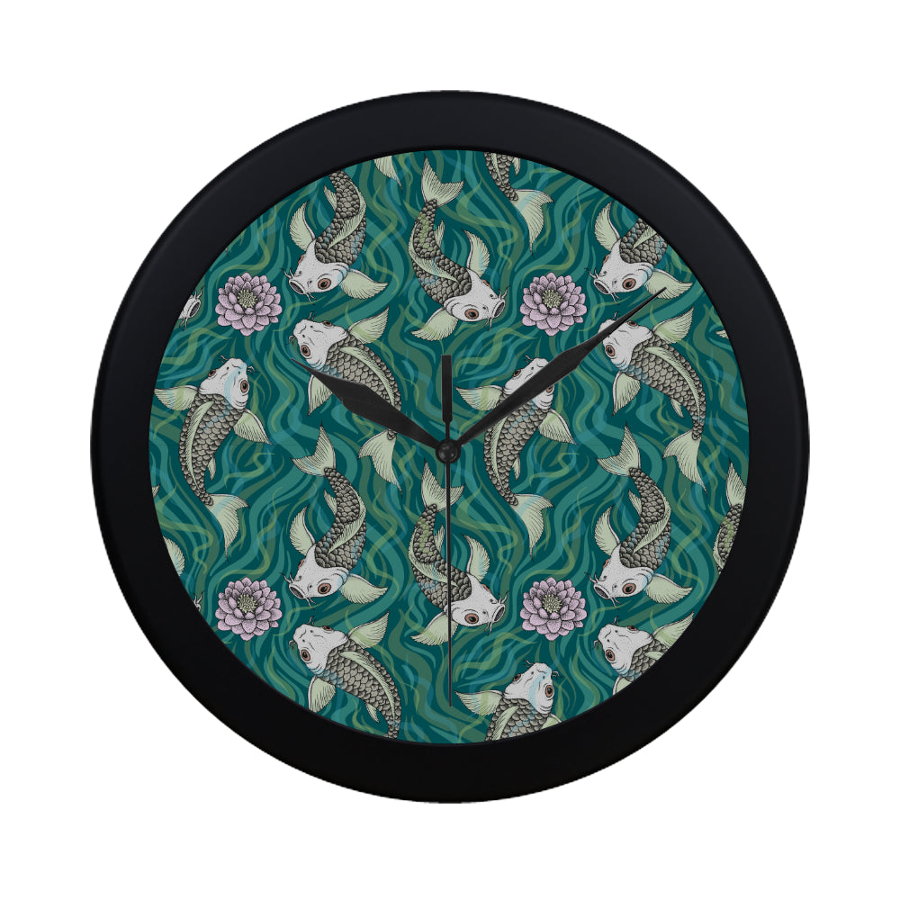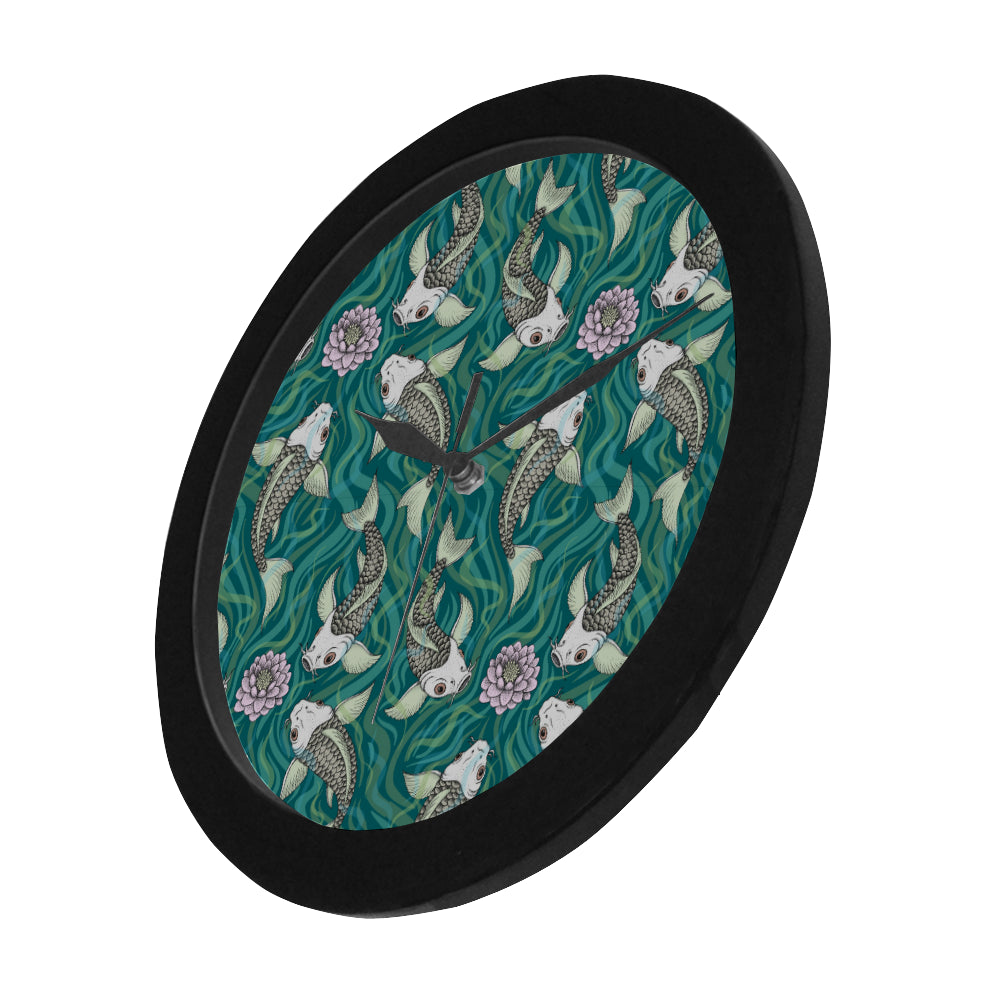 Koi Fish Carp Fish lotus pattern Elegant Black Wall Clock