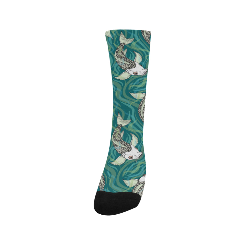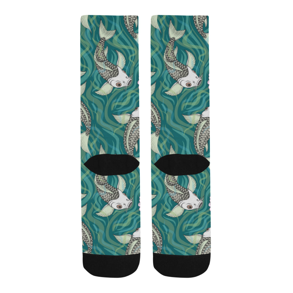 Koi Fish Carp Fish lotus pattern Crew Socks