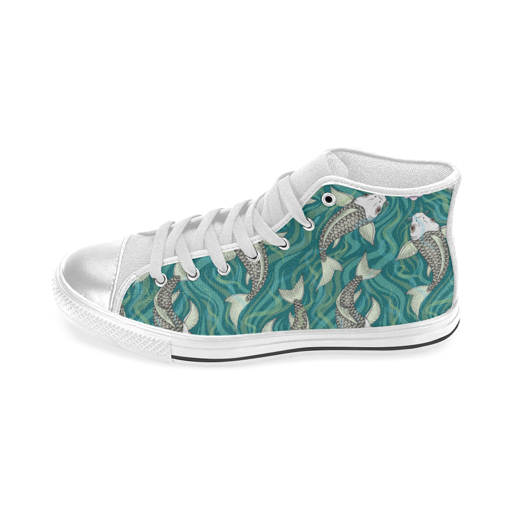 Koi Fish Carp Fish lotus pattern Women's High Top Canvas Shoes White