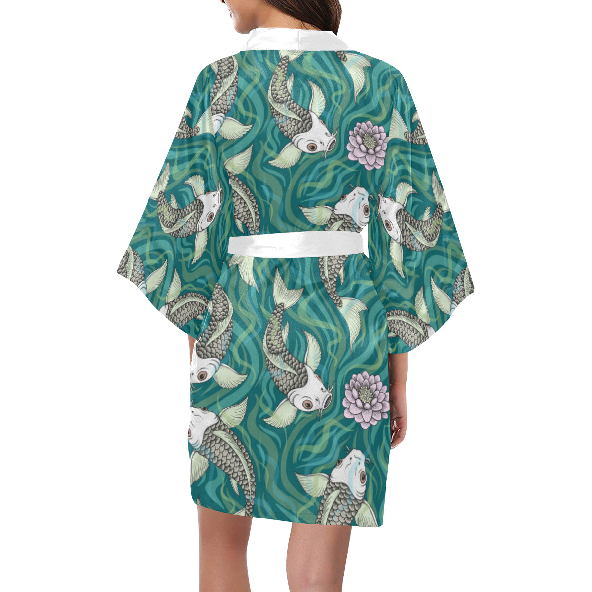 Koi Fish Carp Fish lotus pattern Women's Short Kimono Robe