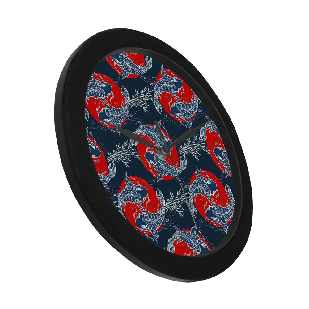 Fancy Carps hand drawn japanese art Elegant Black Wall Clock