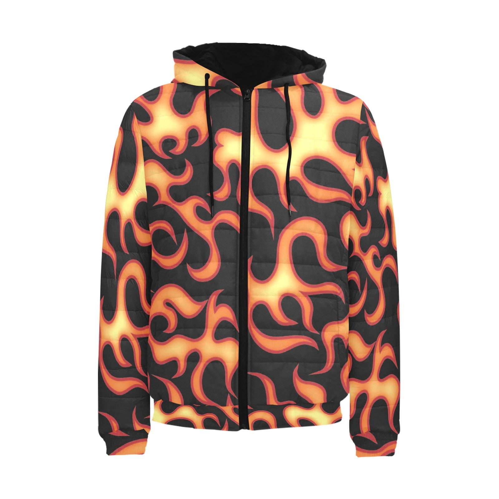 Fire flame dark pattern Men's Padded Hooded Jacket