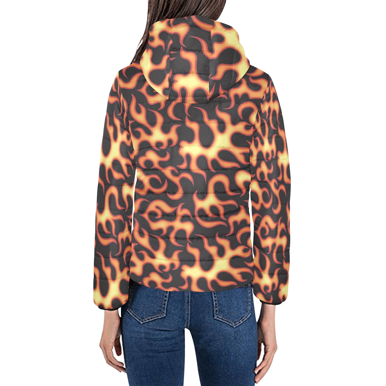 Fire flame dark pattern Women's Padded Hooded Jacket