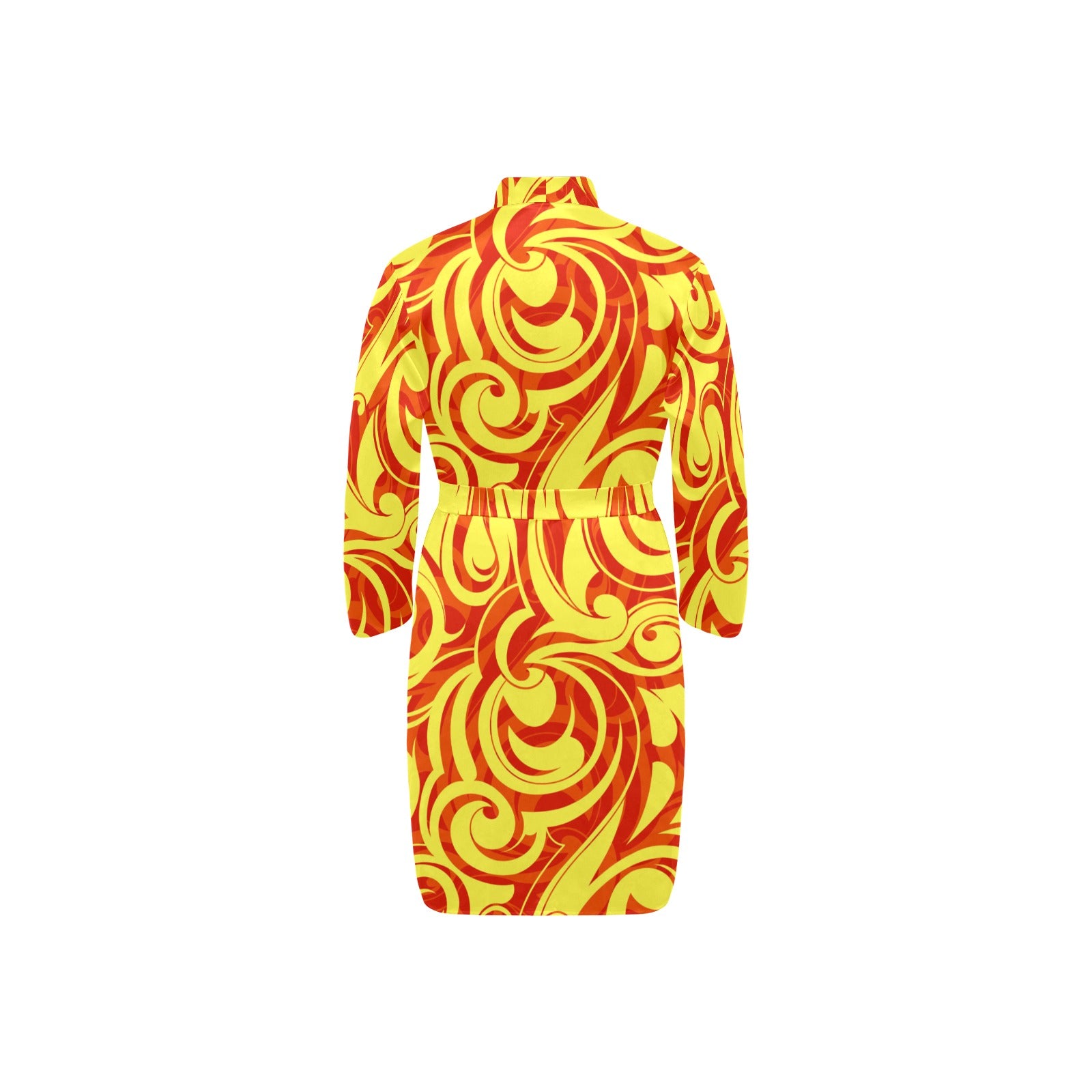 Fire flame design pattern Men's Long Sleeve Belted Night Robe