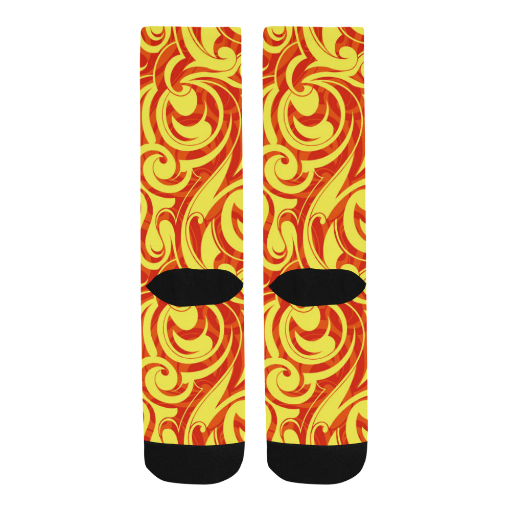 Fire flame design pattern Crew Socks are uniqued design and limited item. It made to order, hand printed, and sewn with love in our factory.