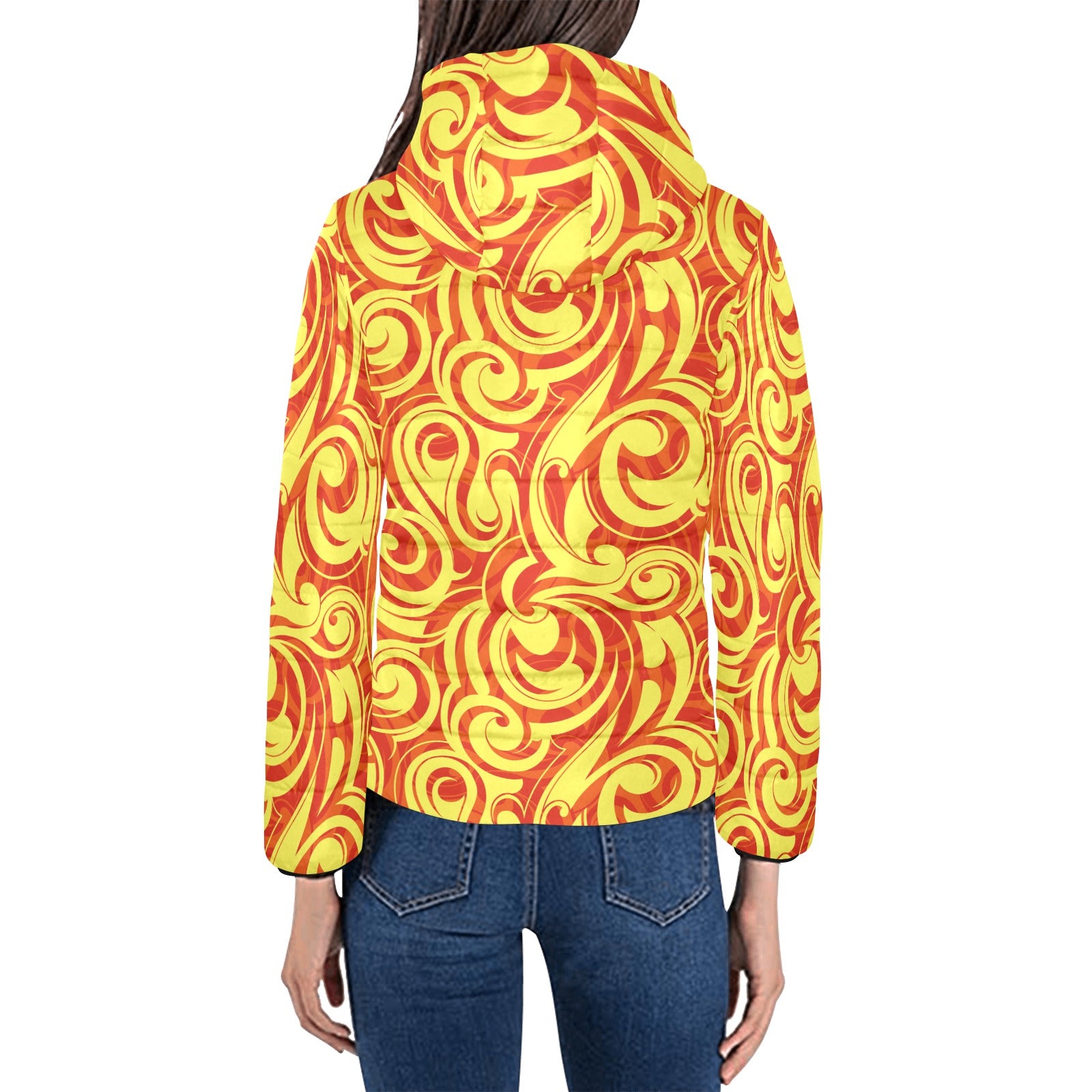 Fire flame design pattern Women's Padded Hooded Jacket