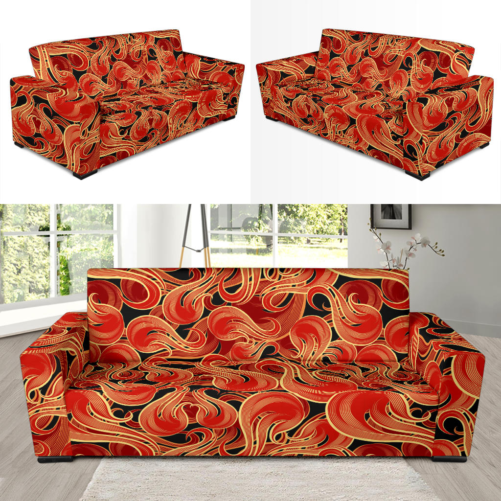 Fire flame pattern Sofa Slipcover is a uniqued design and limited item. It made to order, hand printed, and sewn with love in our factory.