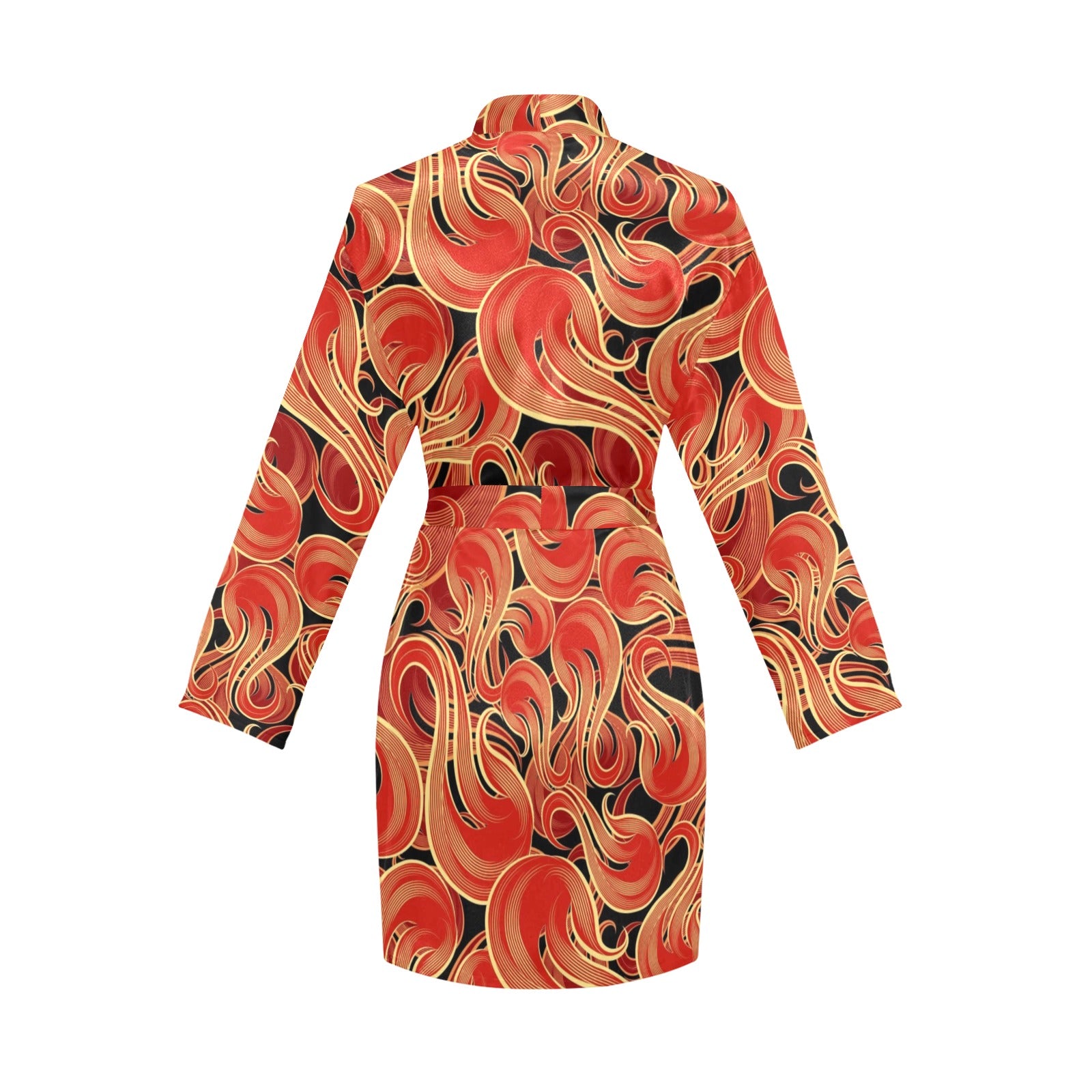 Fire flame pattern Women's Long Sleeve Belted Night Robe
