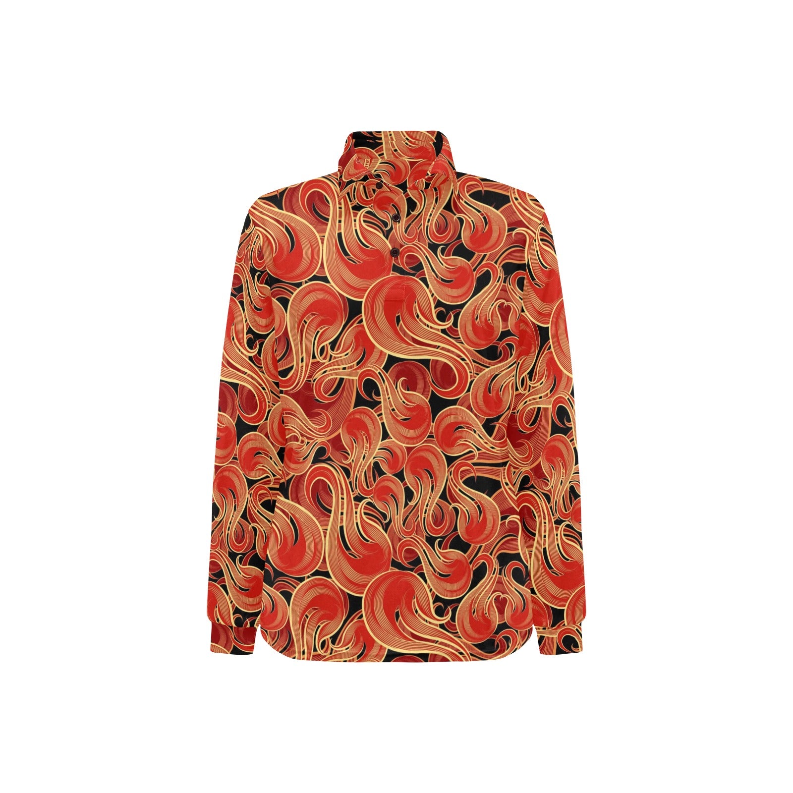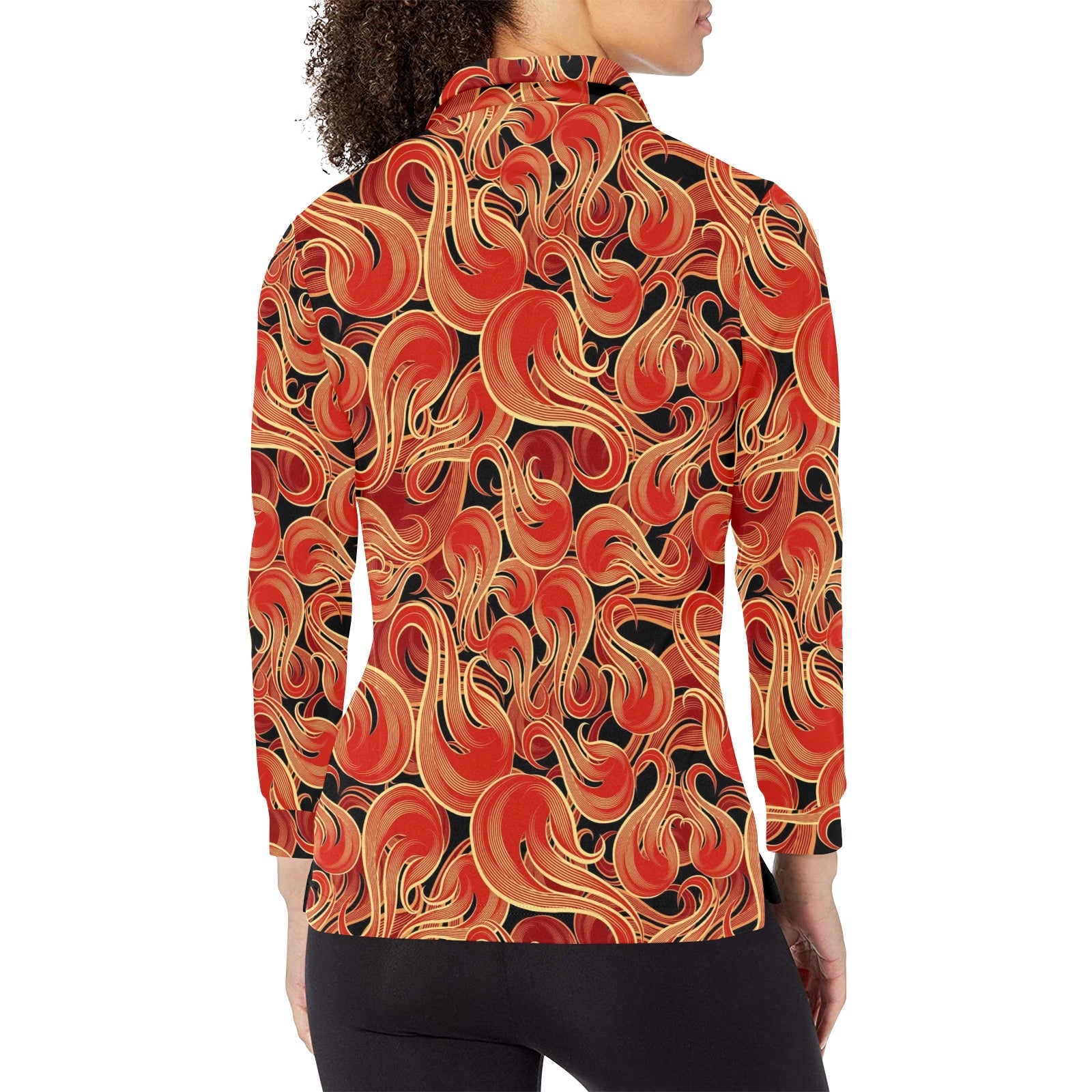 Fire flame pattern Women's Long Sleeve Polo Shirt