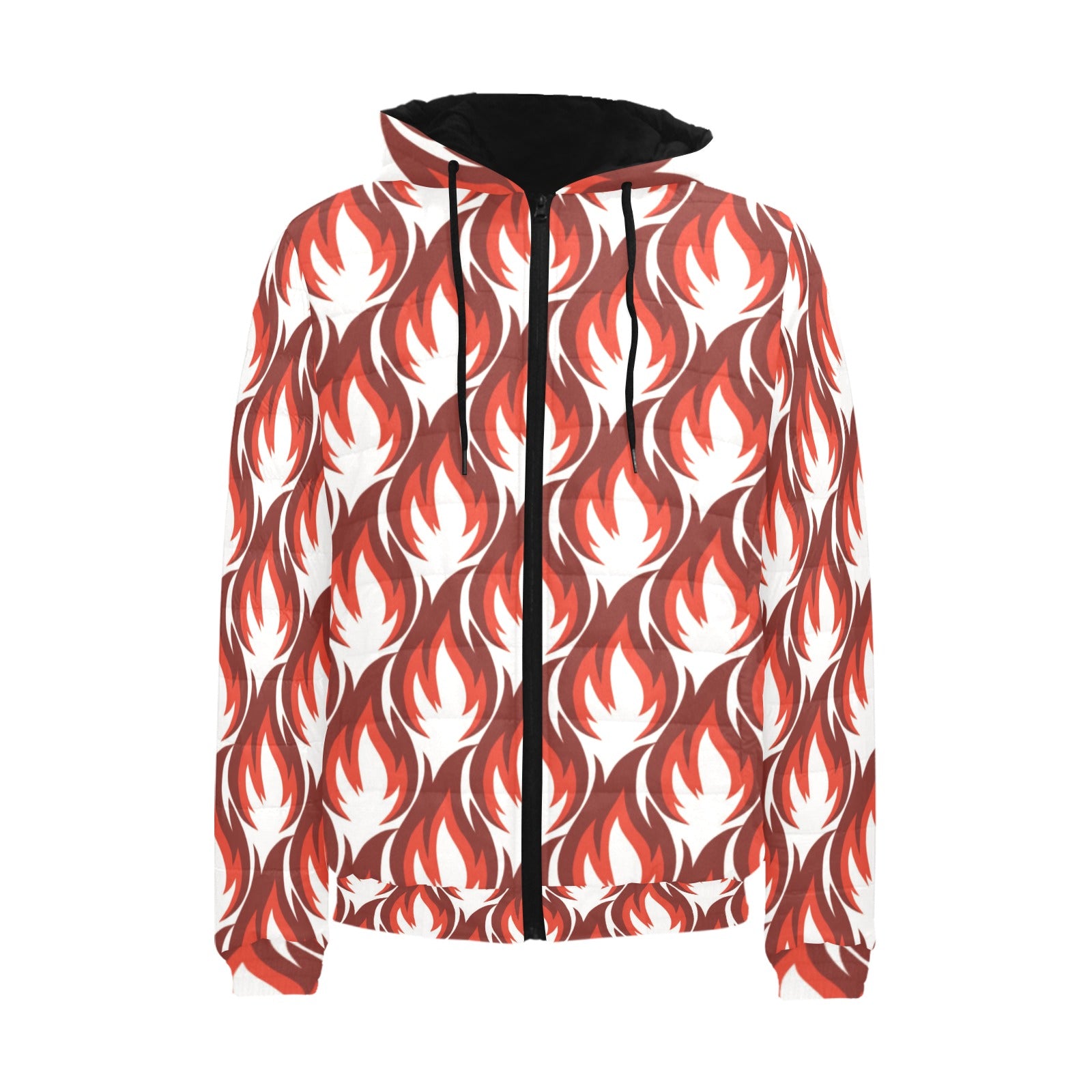 Fire flame symbol design pattern Men's Padded Hooded Jacket