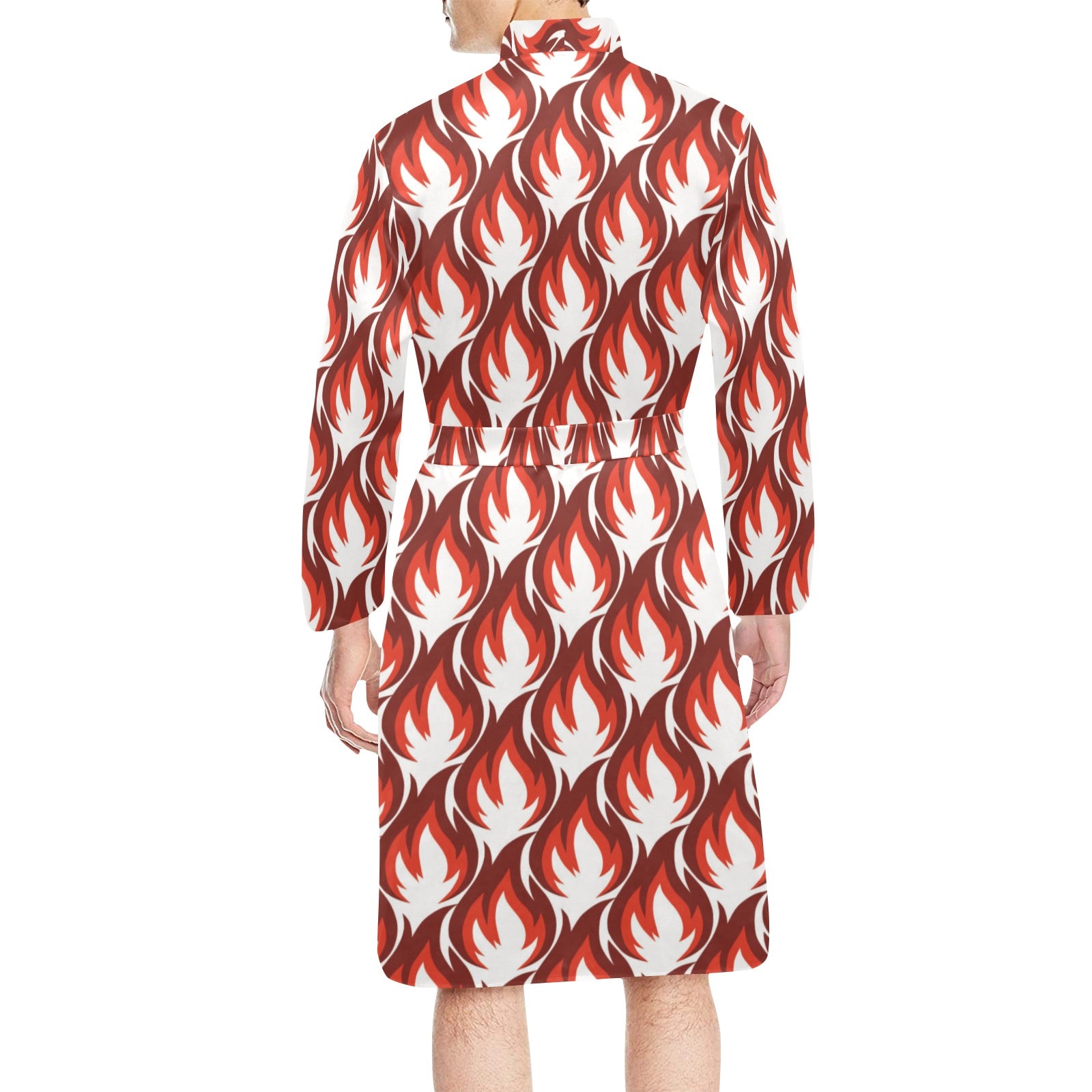 Fire flame symbol design pattern Men's Long Sleeve Belted Night Robe