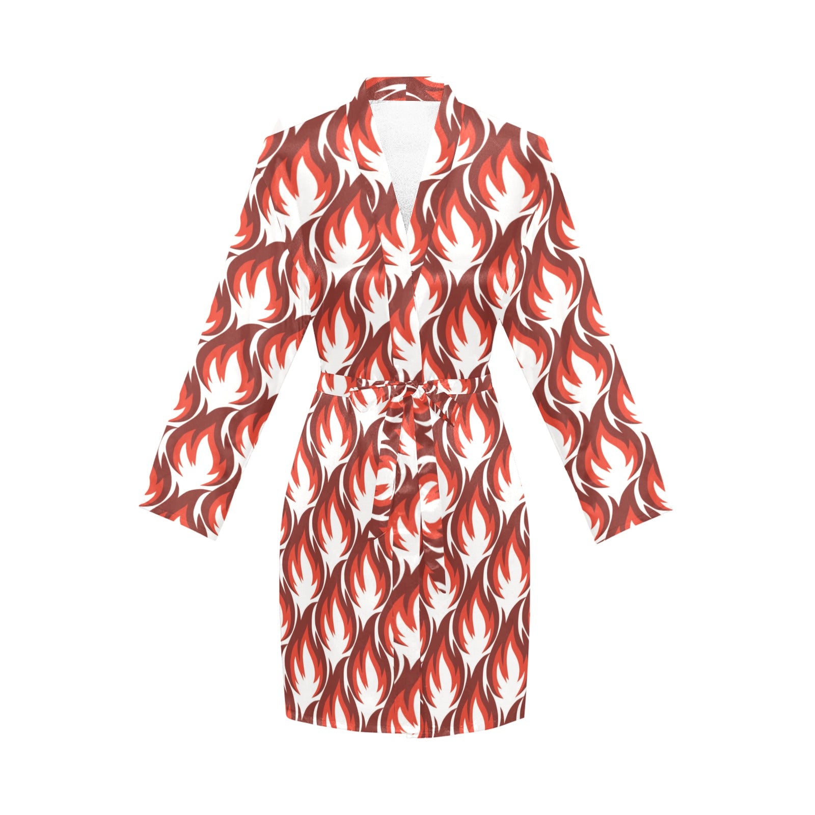 Fire flame symbol design pattern Women's Long Sleeve Belted Night Robe