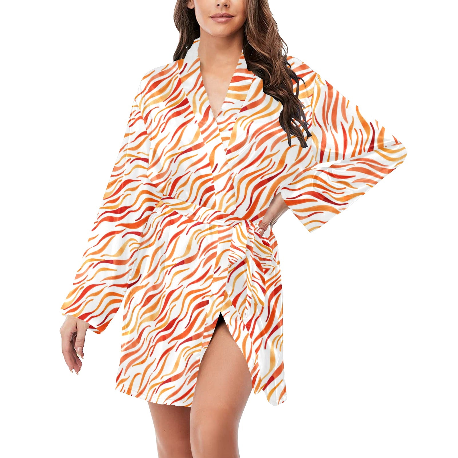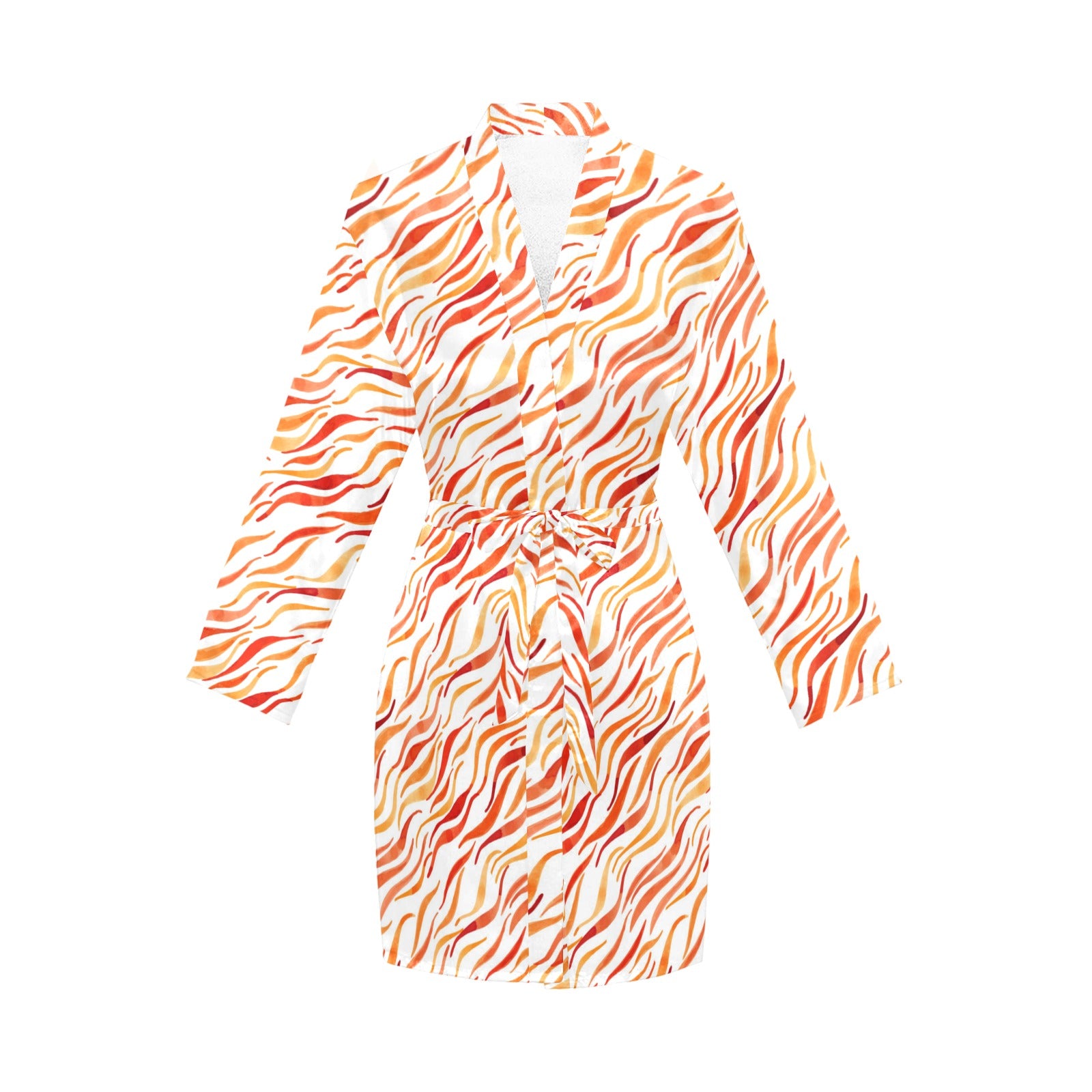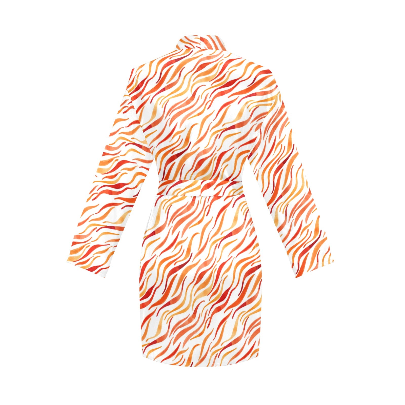 Fire flame watercolor pattern Women's Long Sleeve Belted Night Robe