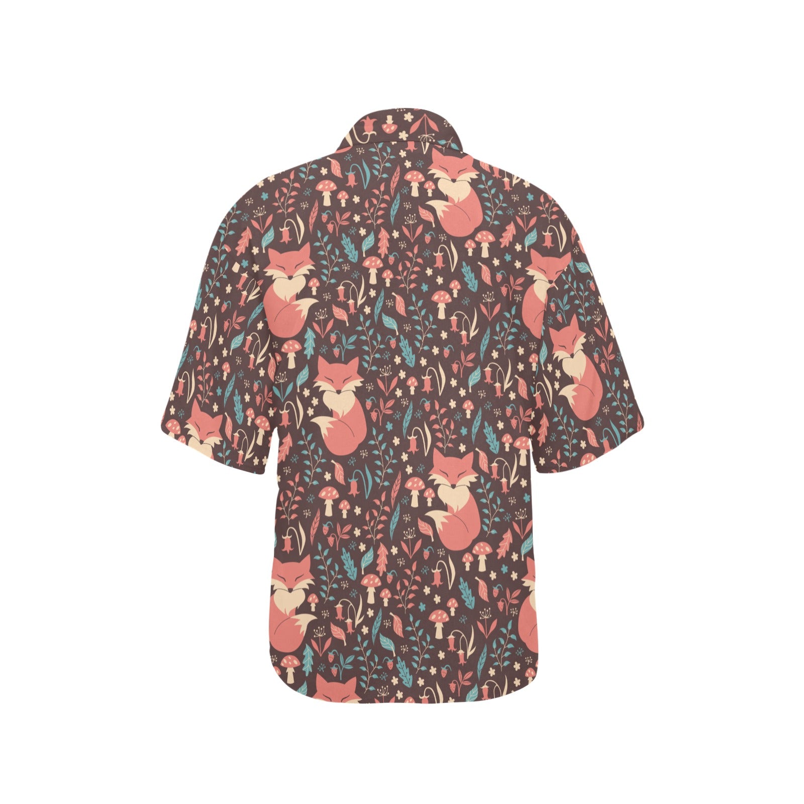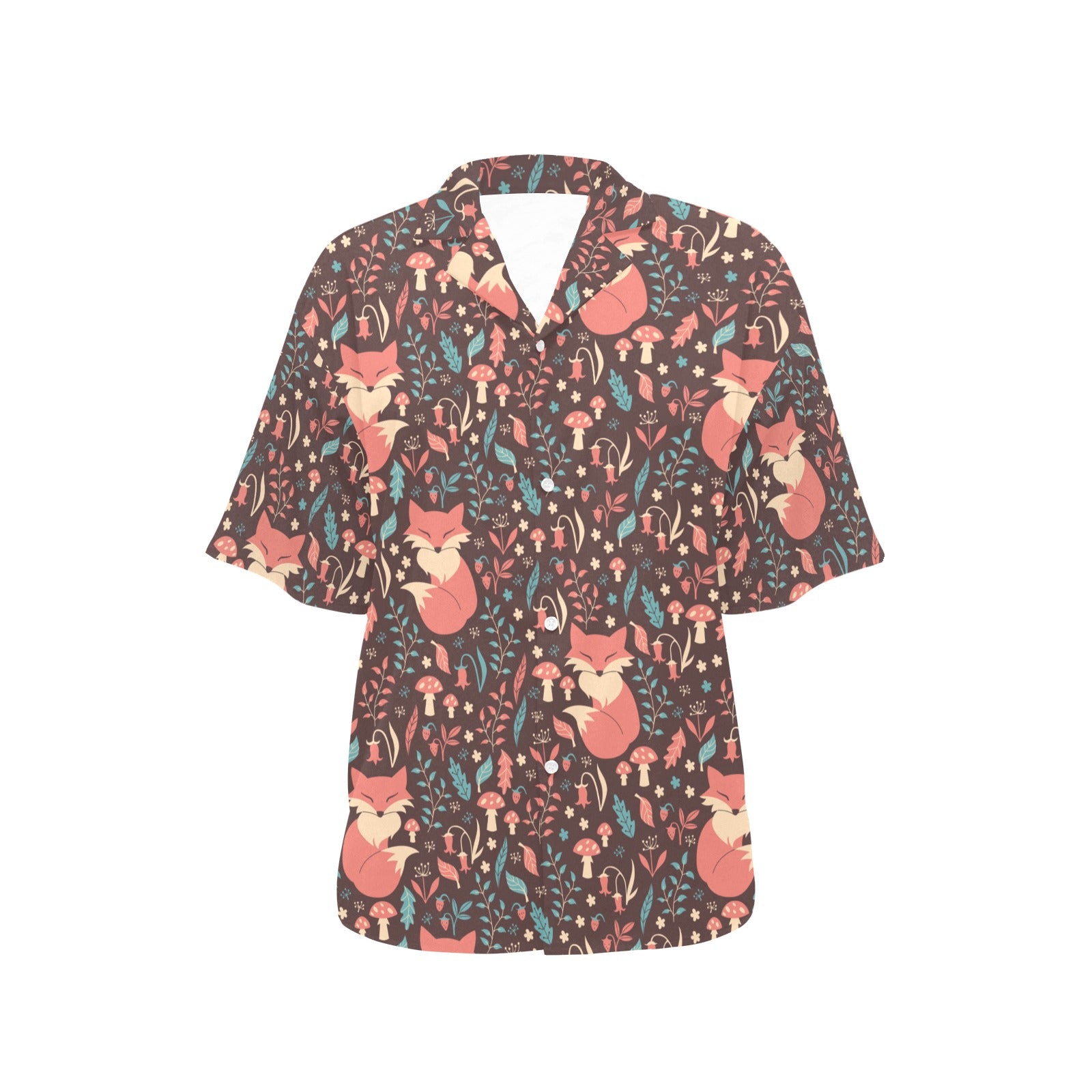 fox leaves mushroom pattern Women's All Over Print Hawaiian Shirt