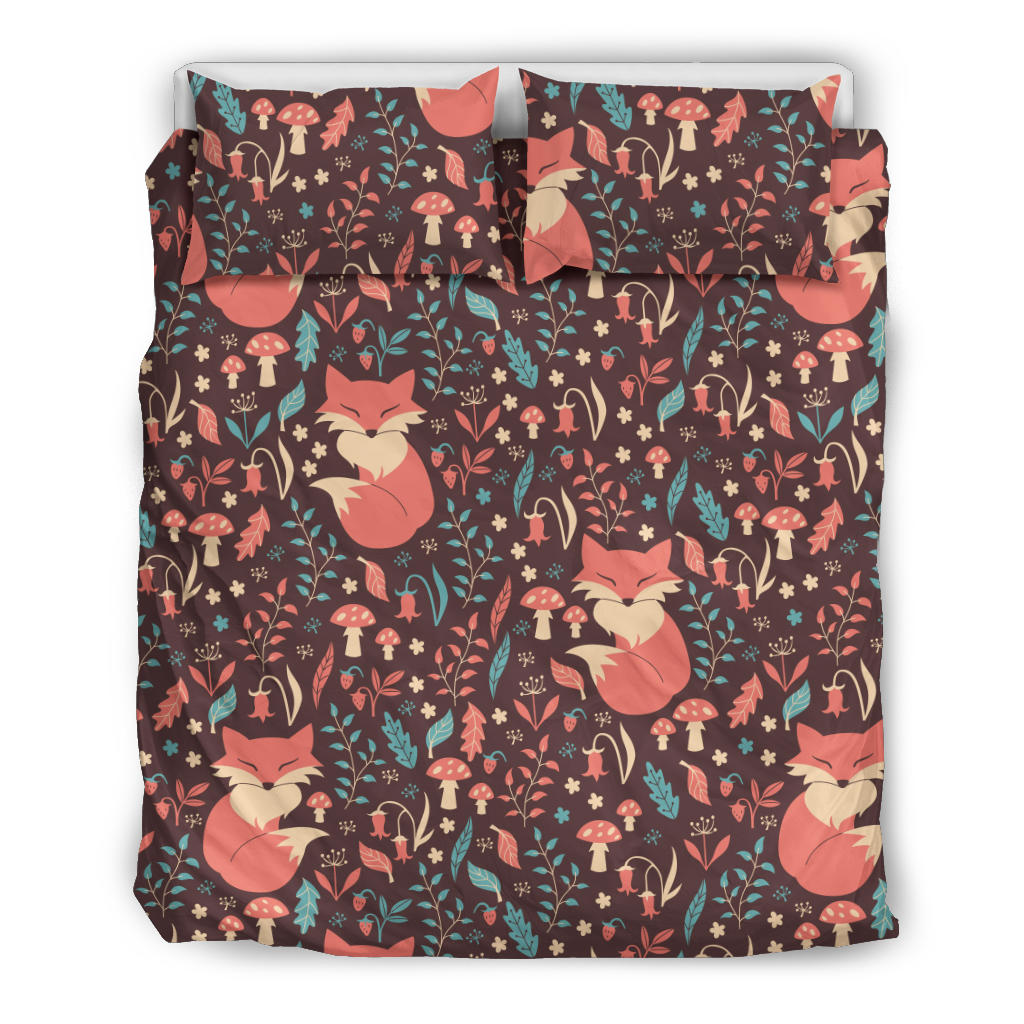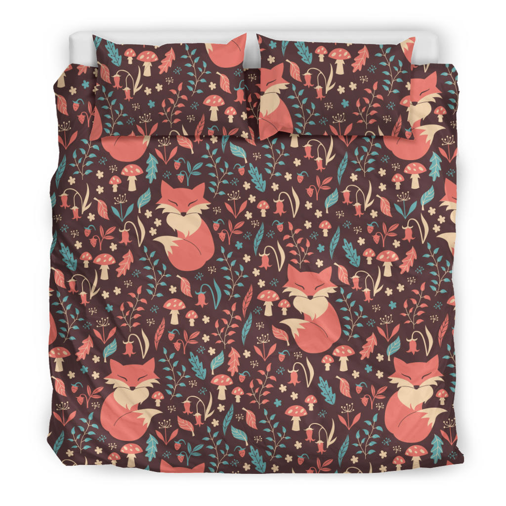 Fox Leaves Mushroom Pattern Bedding Set