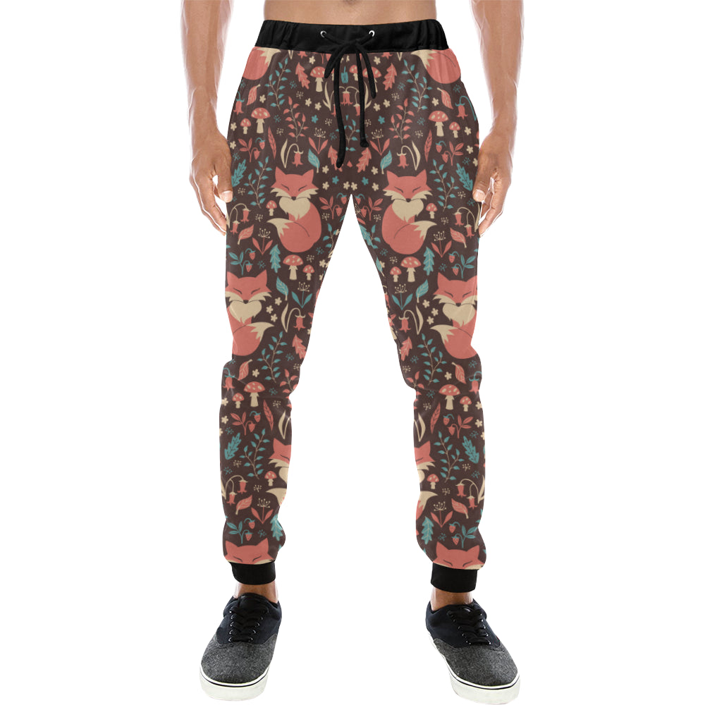 fox leaves mushroom pattern Unisex Casual Sweatpants