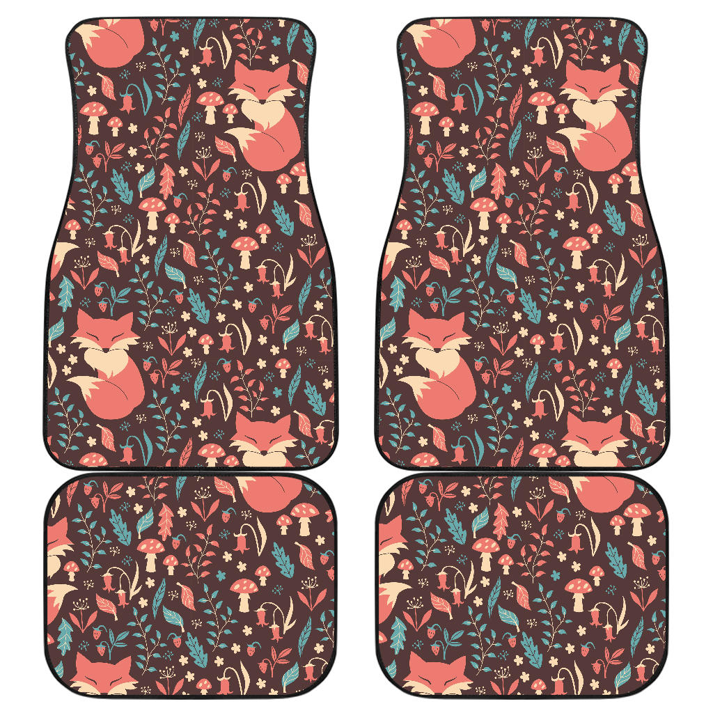 Fox Leaves Mushroom Pattern Front And Back Car Mats
