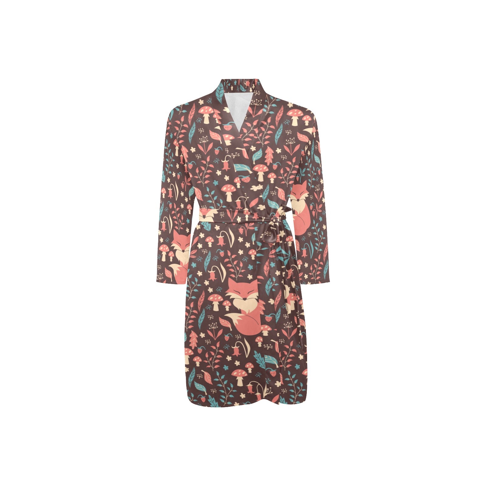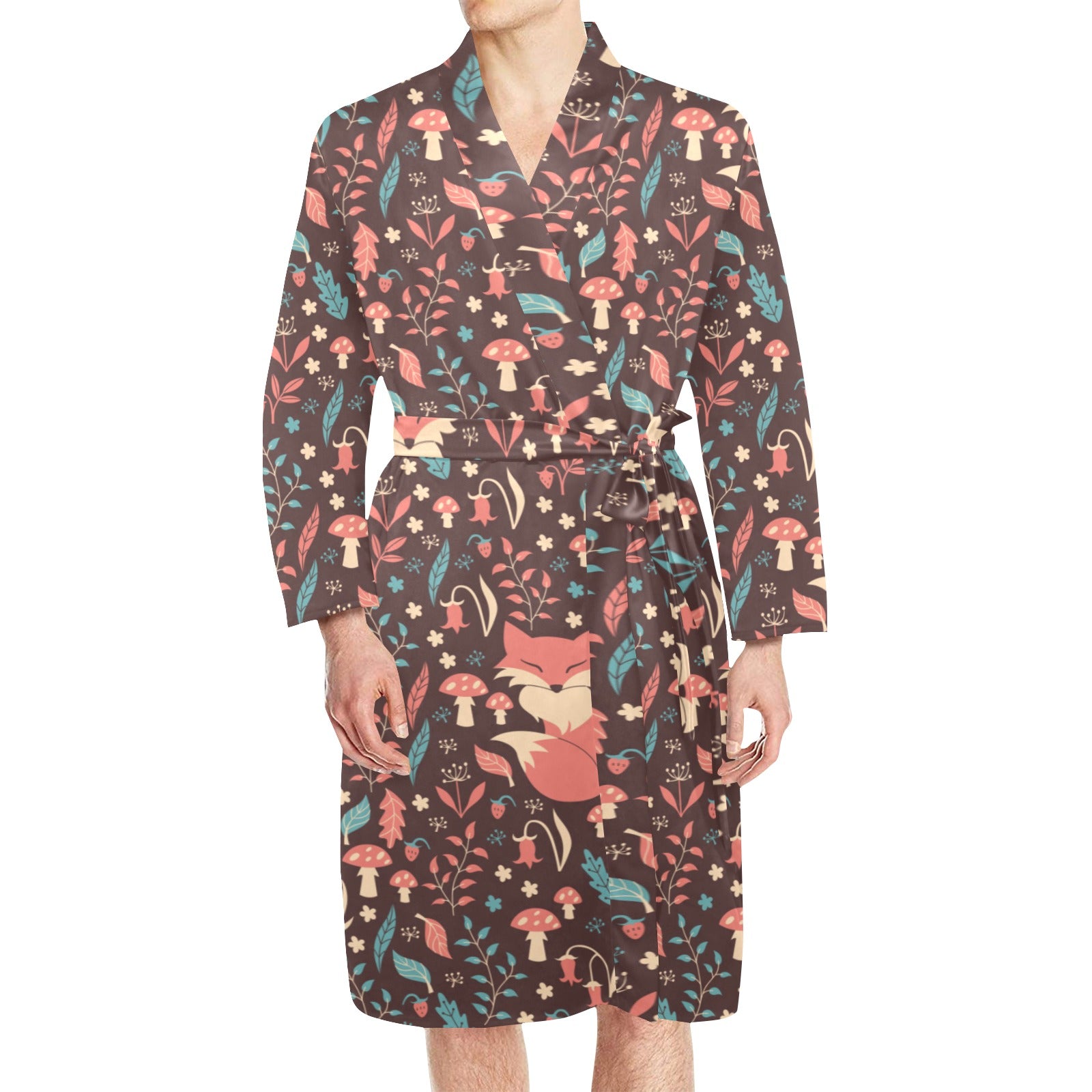 fox leaves mushroom pattern Men's Long Sleeve Belted Night Robe