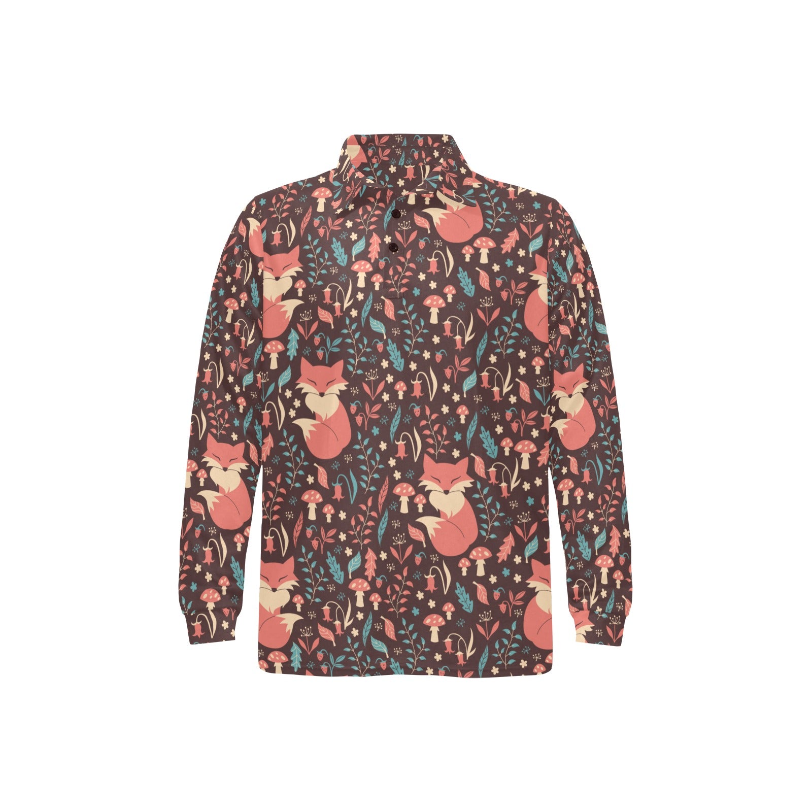 fox leaves mushroom pattern Men's Long Sleeve Polo Shirt
