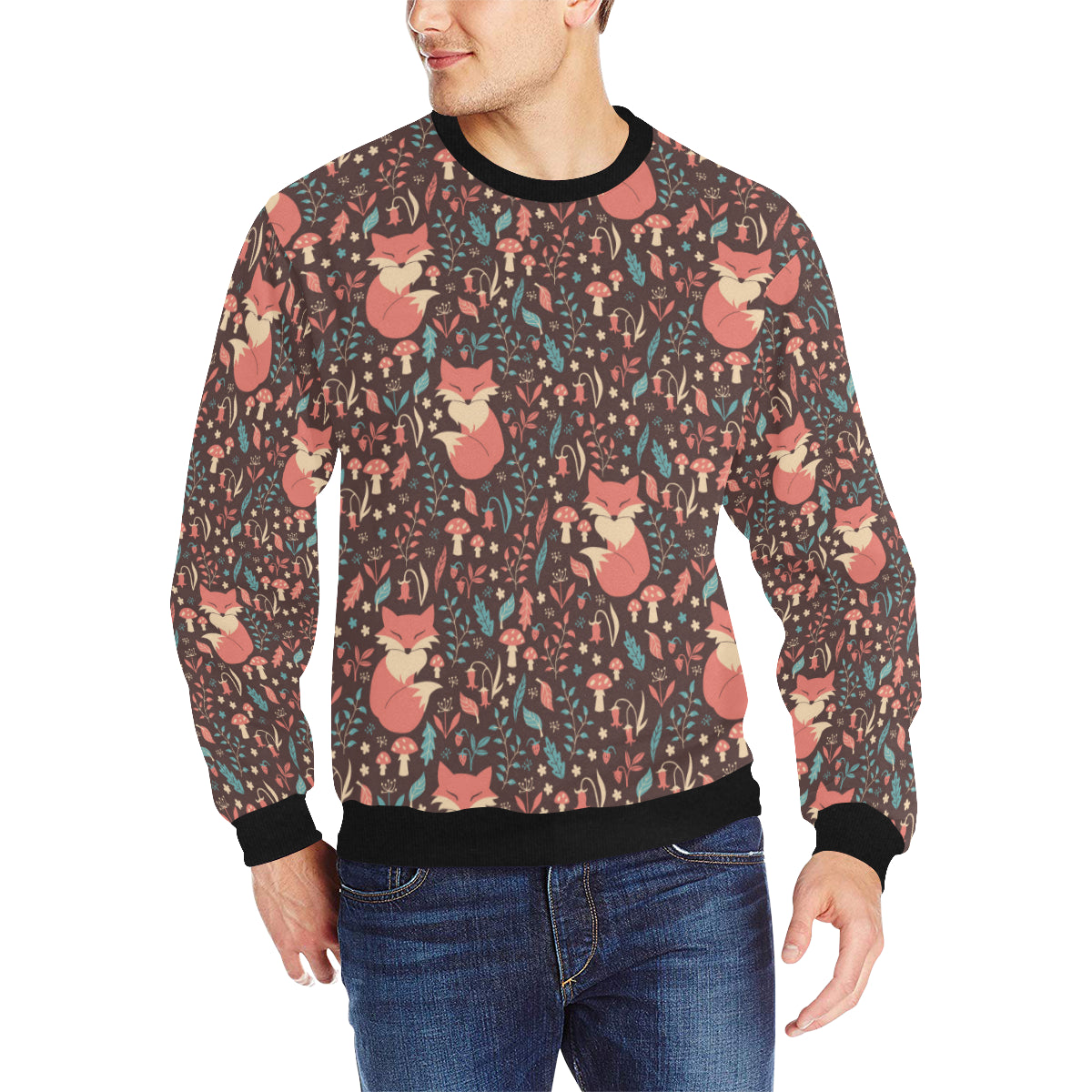 fox leaves mushroom pattern Men's Crew Neck Sweatshirt