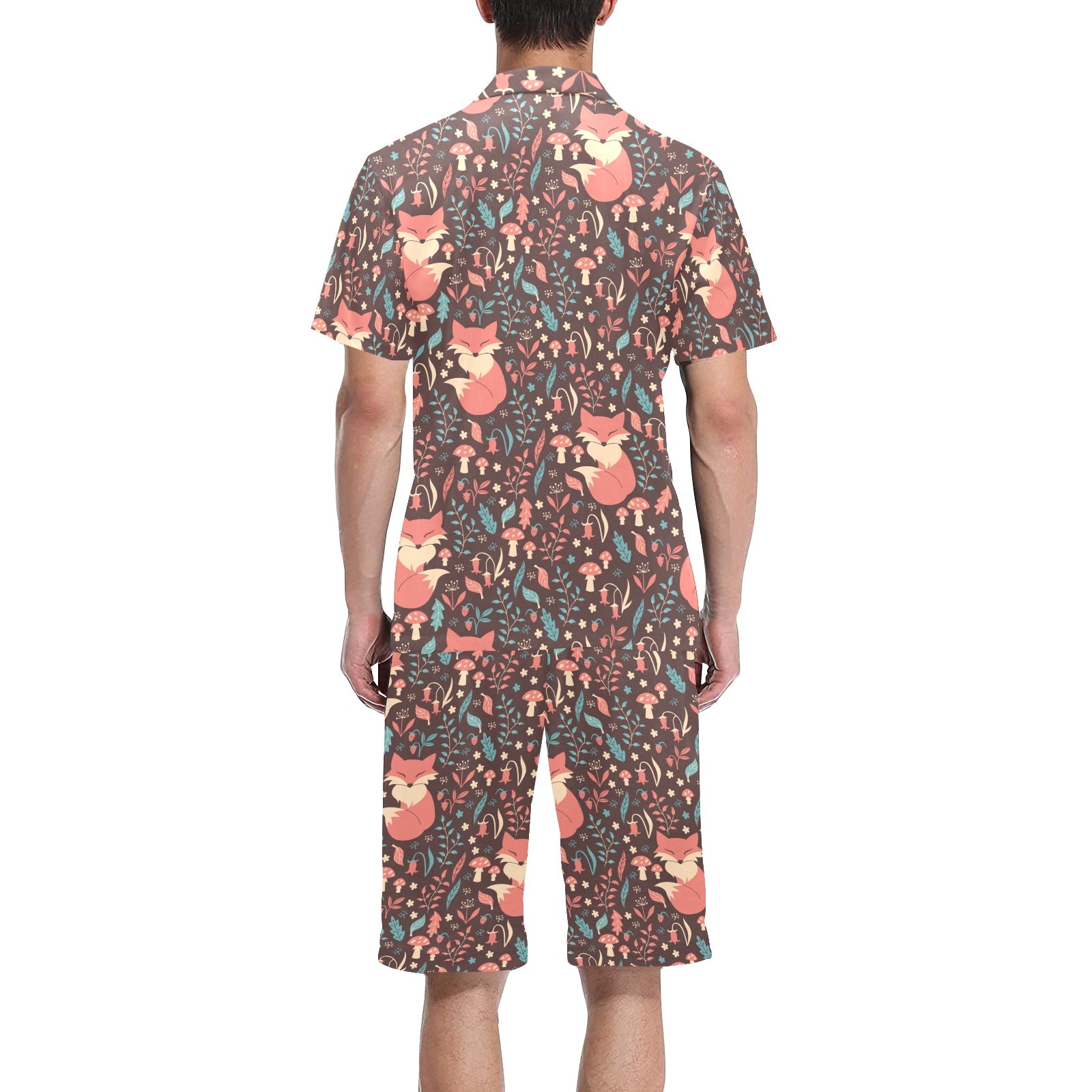 fox leaves mushroom pattern Men's V-Neck Short Pajama Set