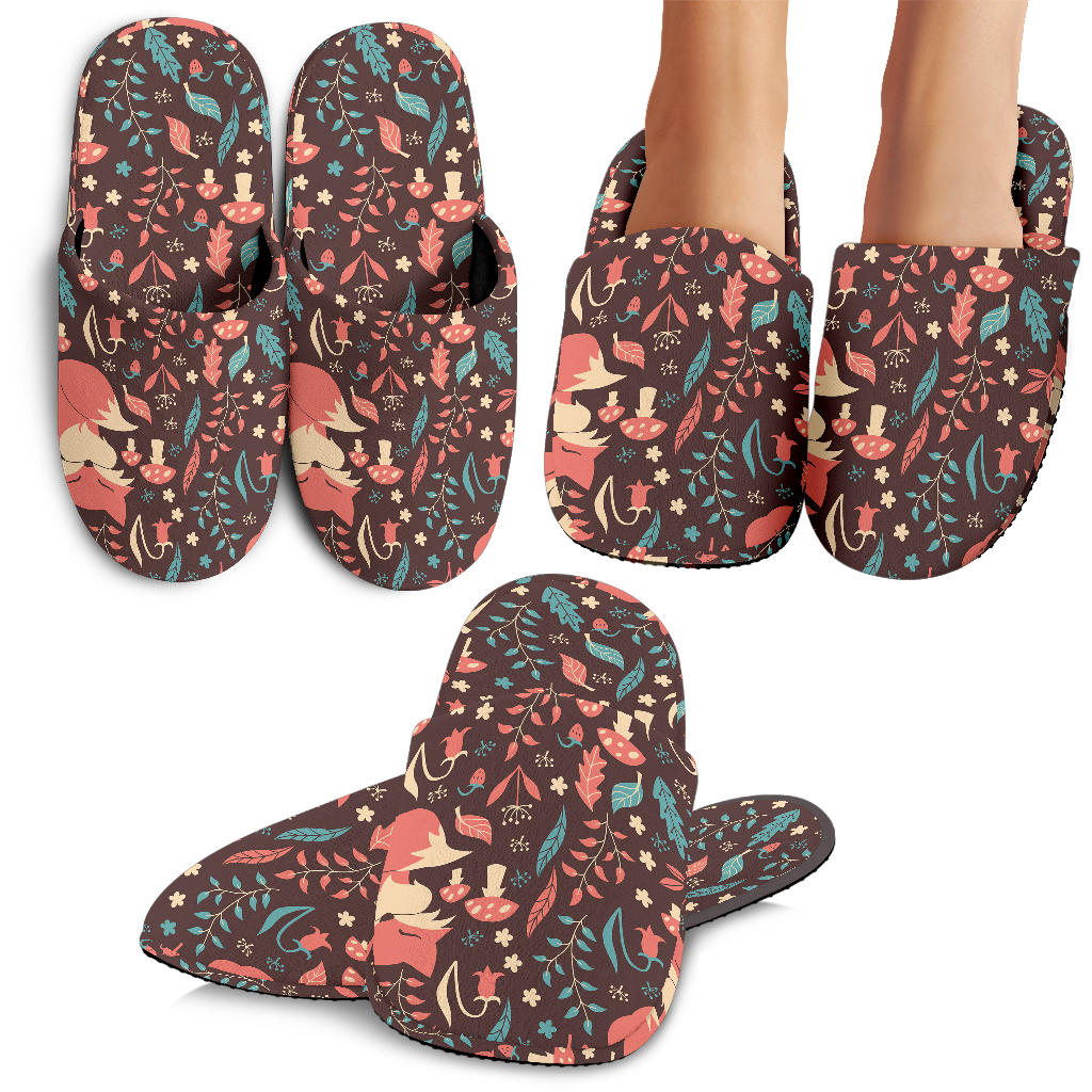 fox leaves mushroom pattern Slippers are uniqued design and limited item. It made to order, hand printed, and sewn with love in our factory.