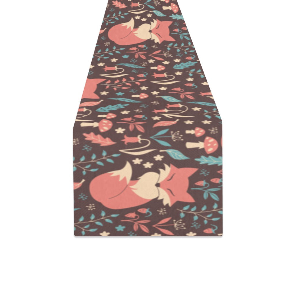 fox leaves mushroom pattern Table Runner