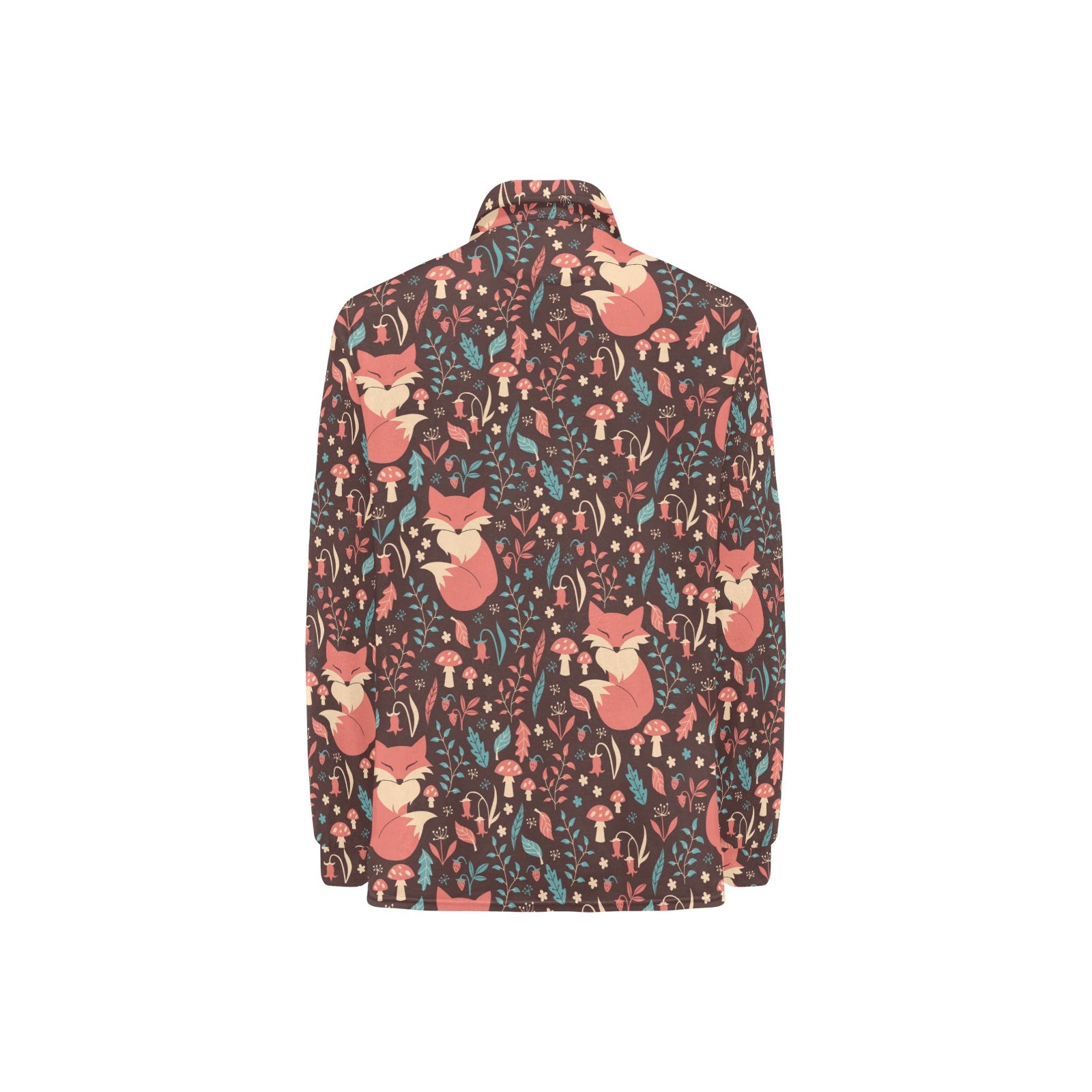 fox leaves mushroom pattern Women's Long Sleeve Polo Shirt