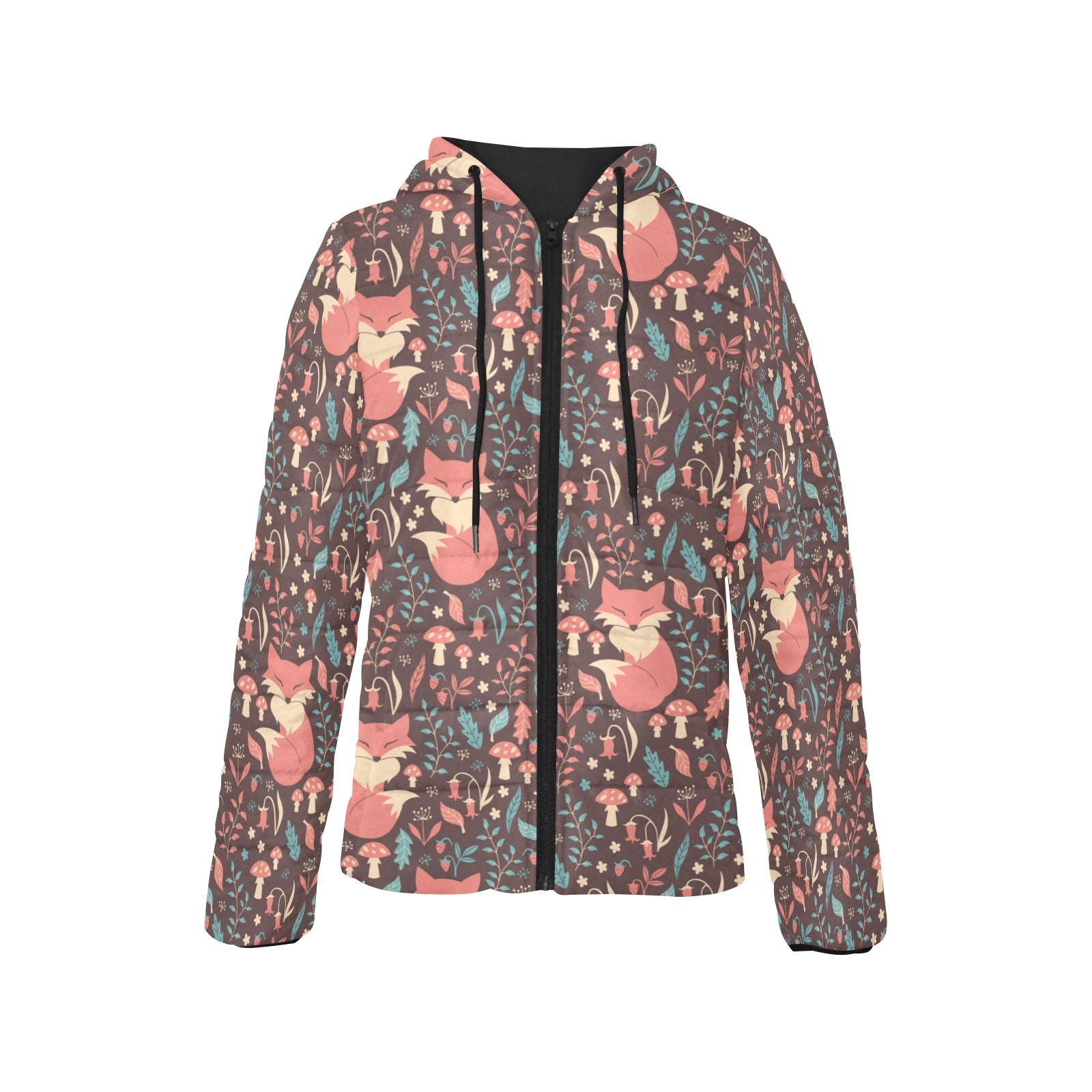 fox leaves mushroom pattern Women's Padded Hooded Jacket