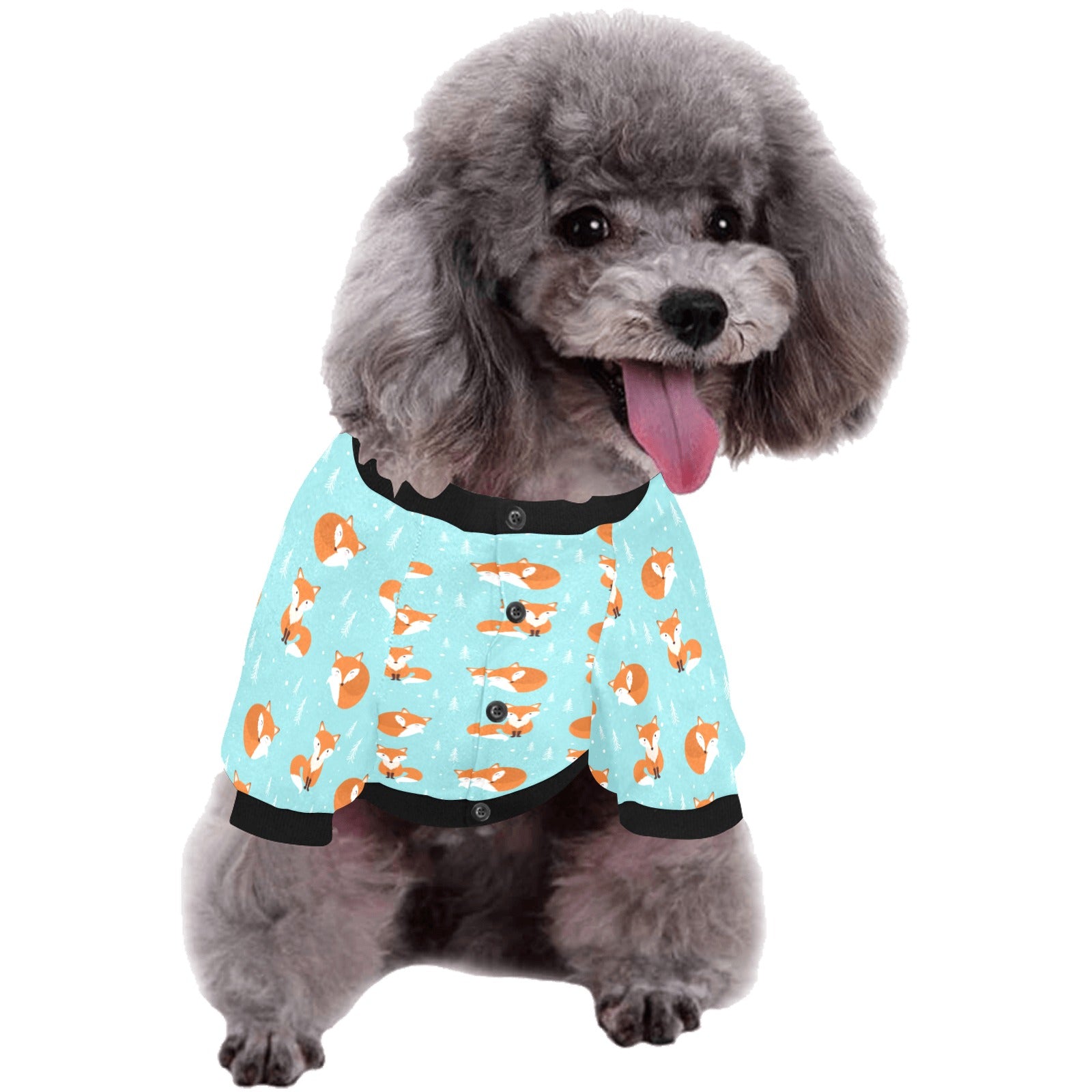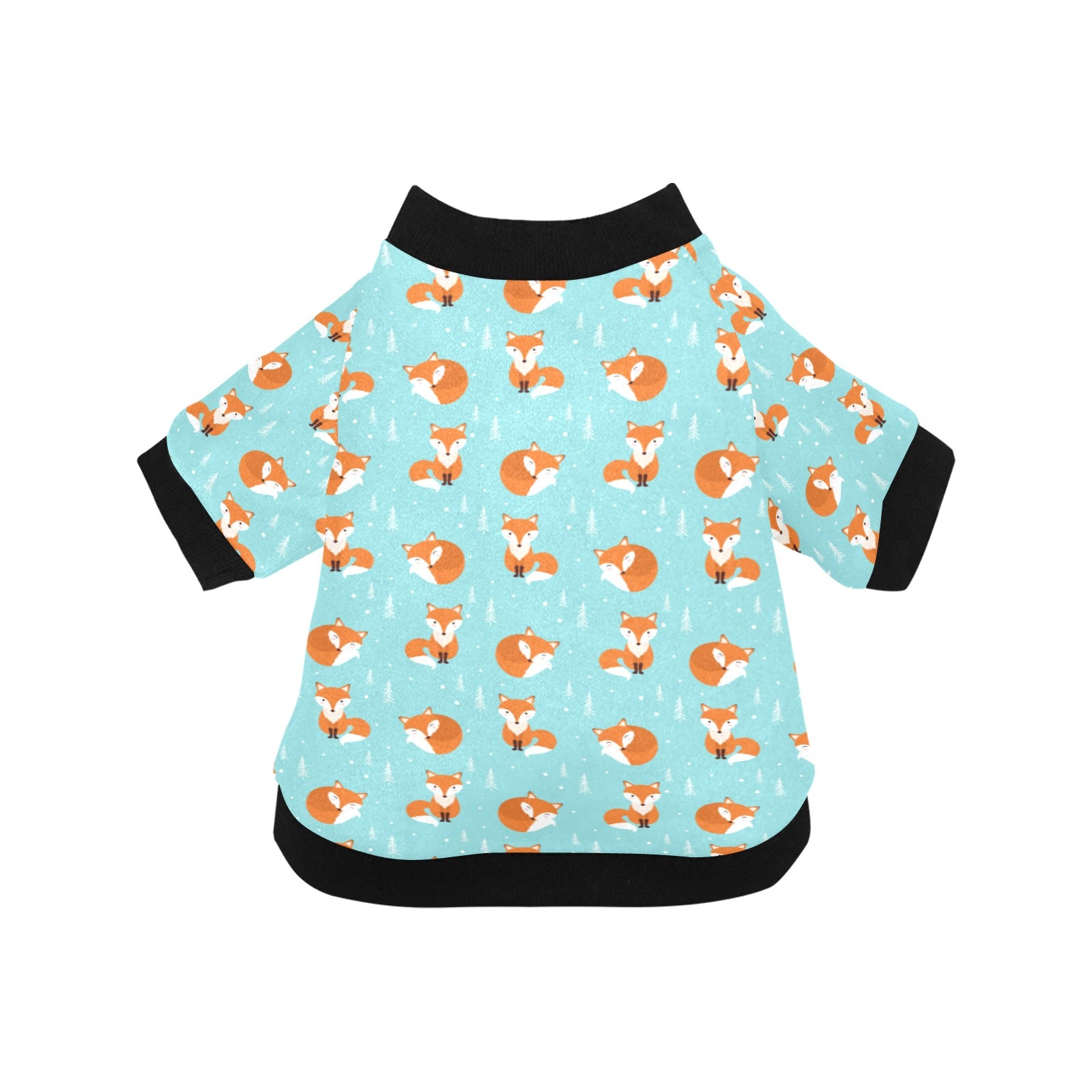 Fox pattern blue b ackground All Over Print Pet Dog Round Neck Fuzzy Shirt