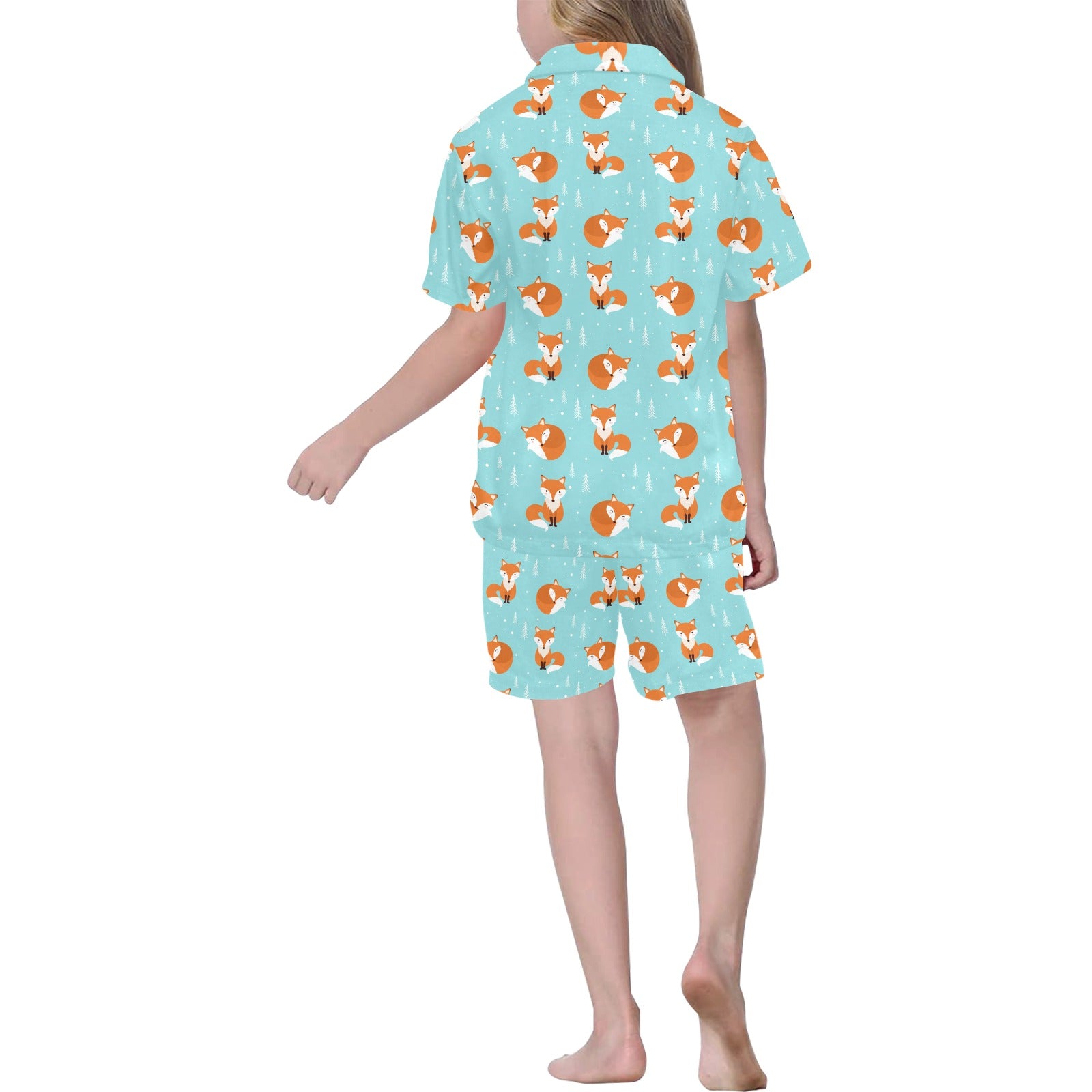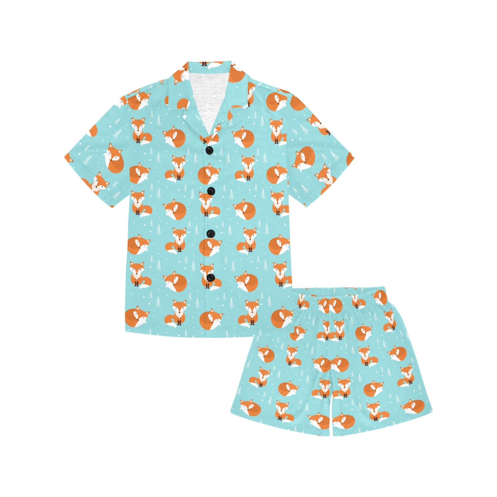 Fox pattern blue b ackground Kids' Boys' Girls' V-Neck Short Pajama Set
