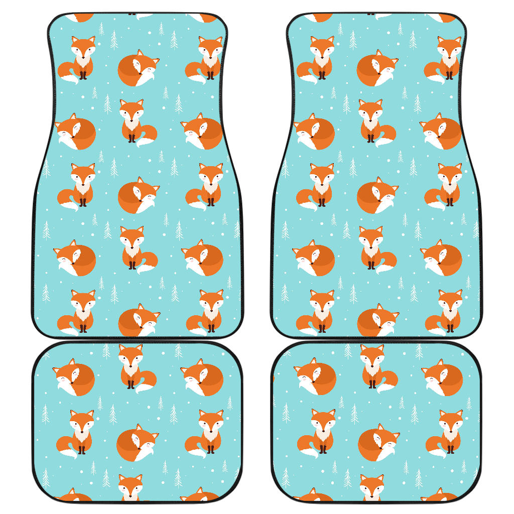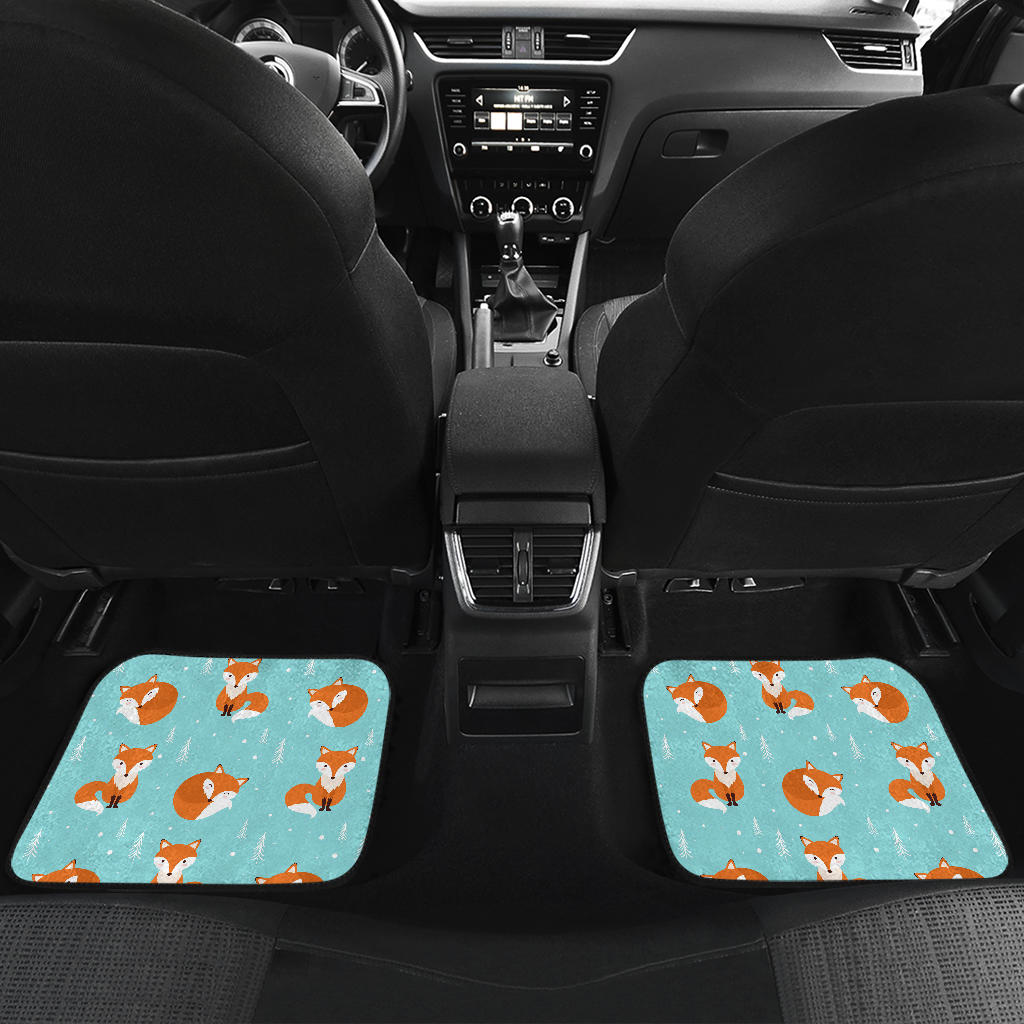 Fox Pattern Blue B Ackground Front And Back Car Mats