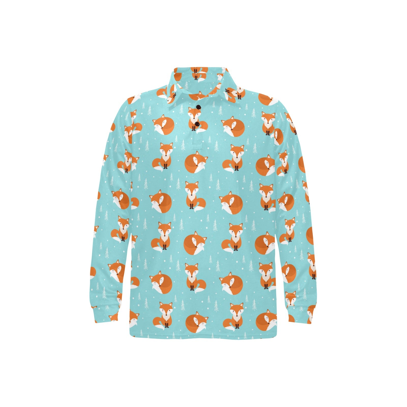 Fox pattern blue b ackground Men's Long Sleeve Polo Shirt