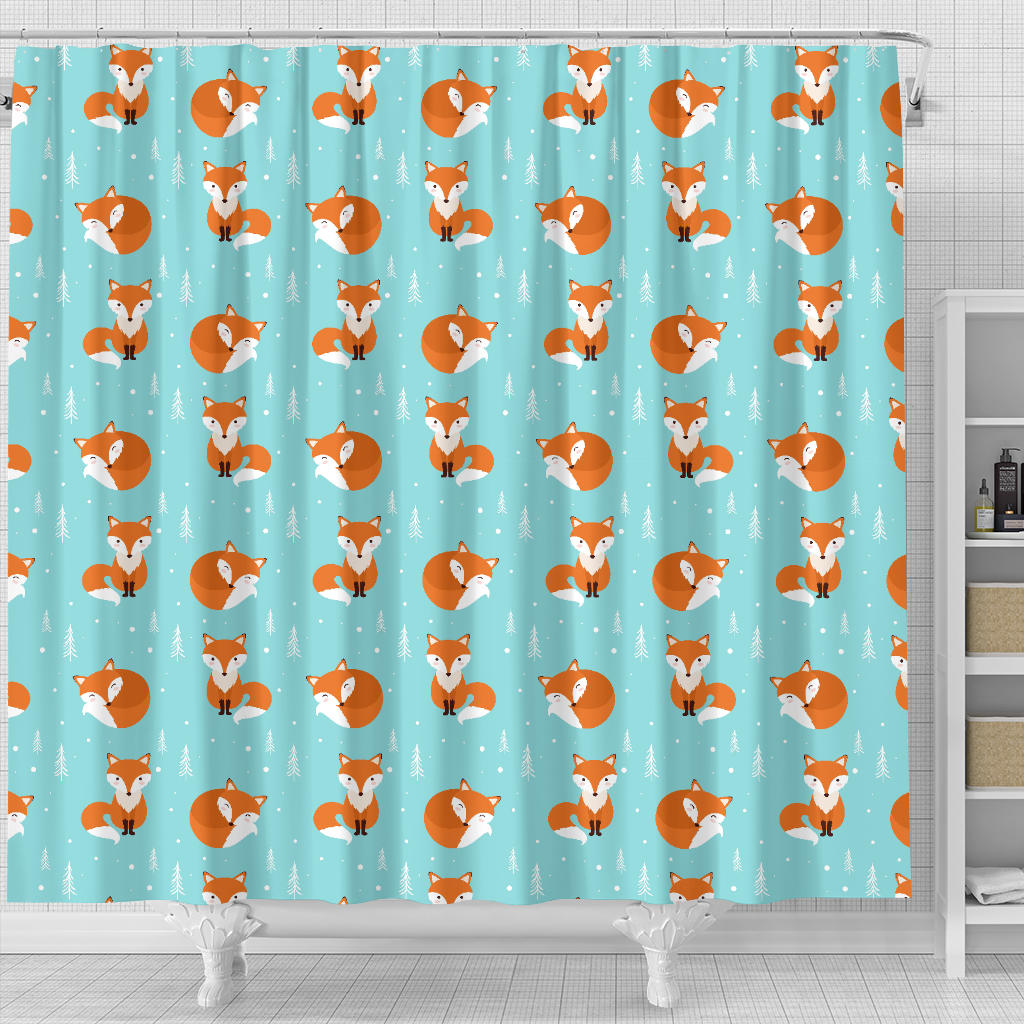 Fox Pattern Blue B Ackground Shower Curtain Fulfilled In US