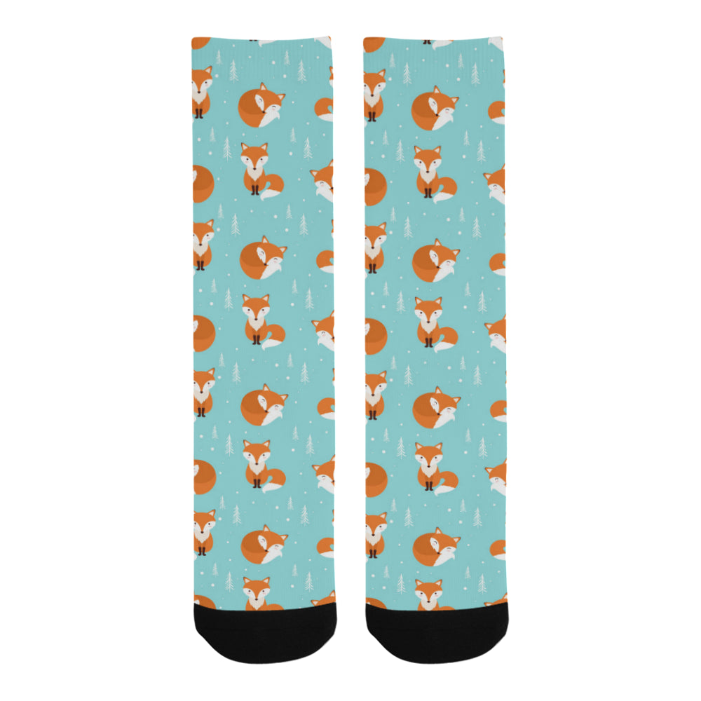 Fox pattern blue b ackground Crew Socks are uniqued design and limited item. It made to order, hand printed, and sewn with love in our factory.