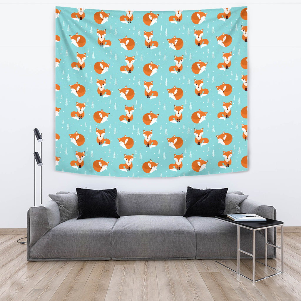 Fox Pattern Blue B Ackground Wall Tapestry