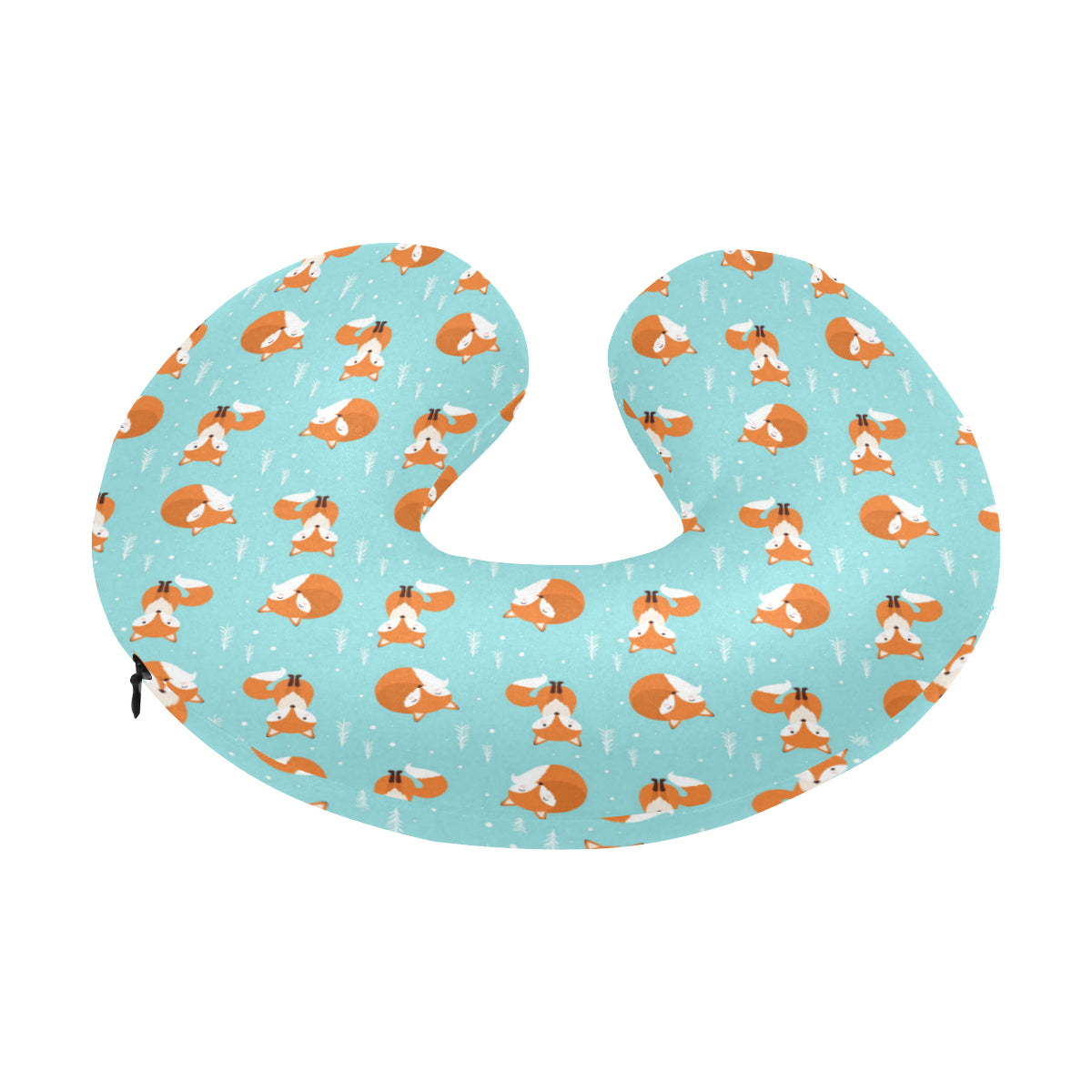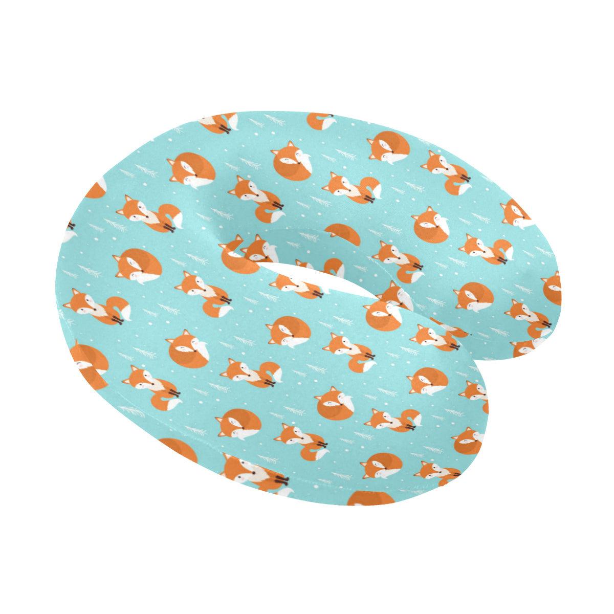 Fox pattern blue b ackground U-Shaped Travel Neck Pillow