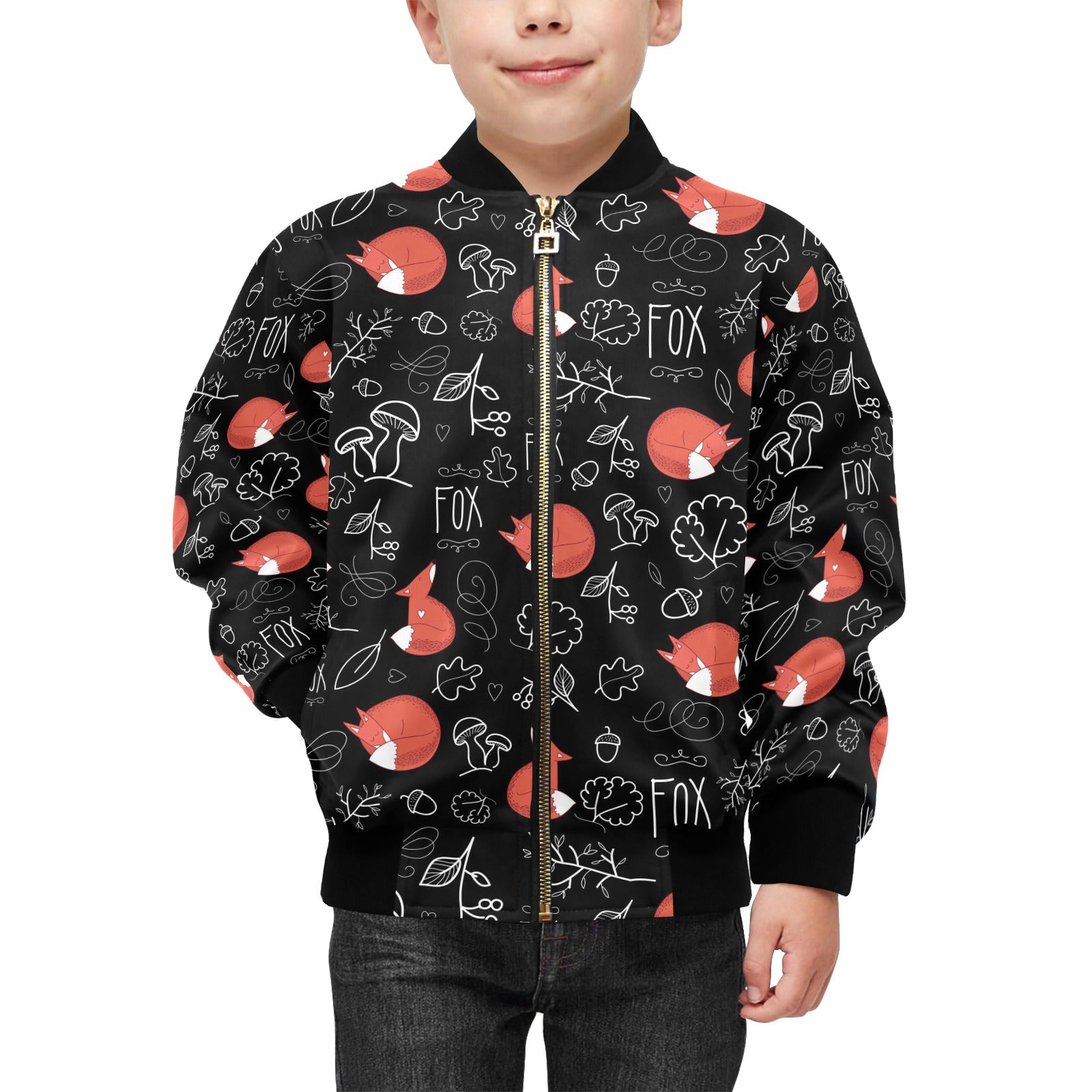 fox sleeping fox pattern Kids' Boys' Girls' Bomber Jacket