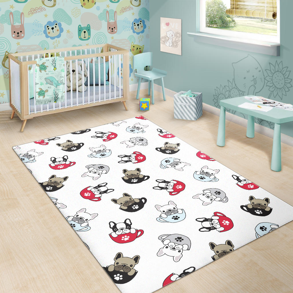 French bulldog cup paw pattern Area Rug is a uniqued design and limited item. It made to order, hand printed, and sewn with love in our factory.