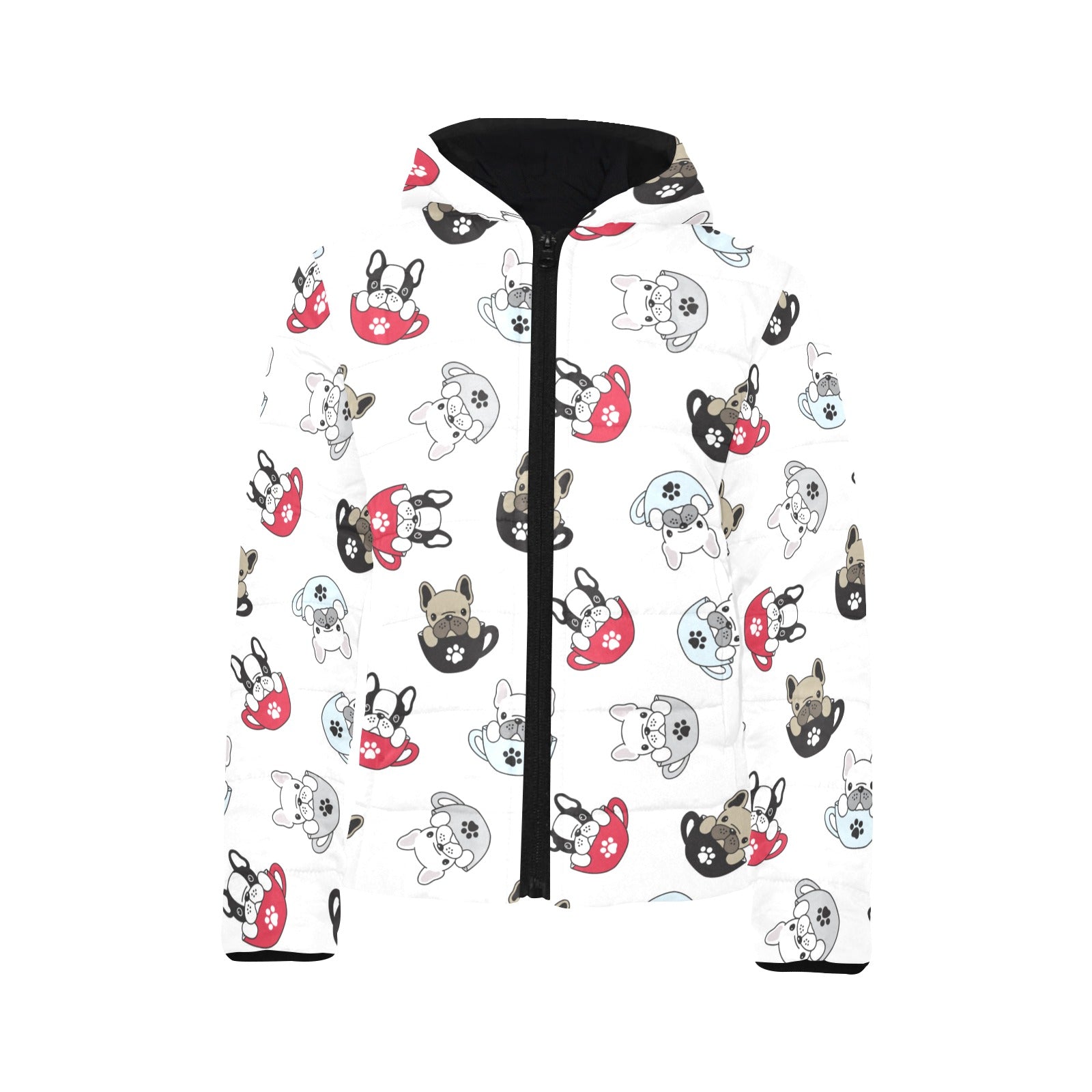 French bulldog cup paw pattern Kids' Boys' Girls' Padded Hooded Jacket