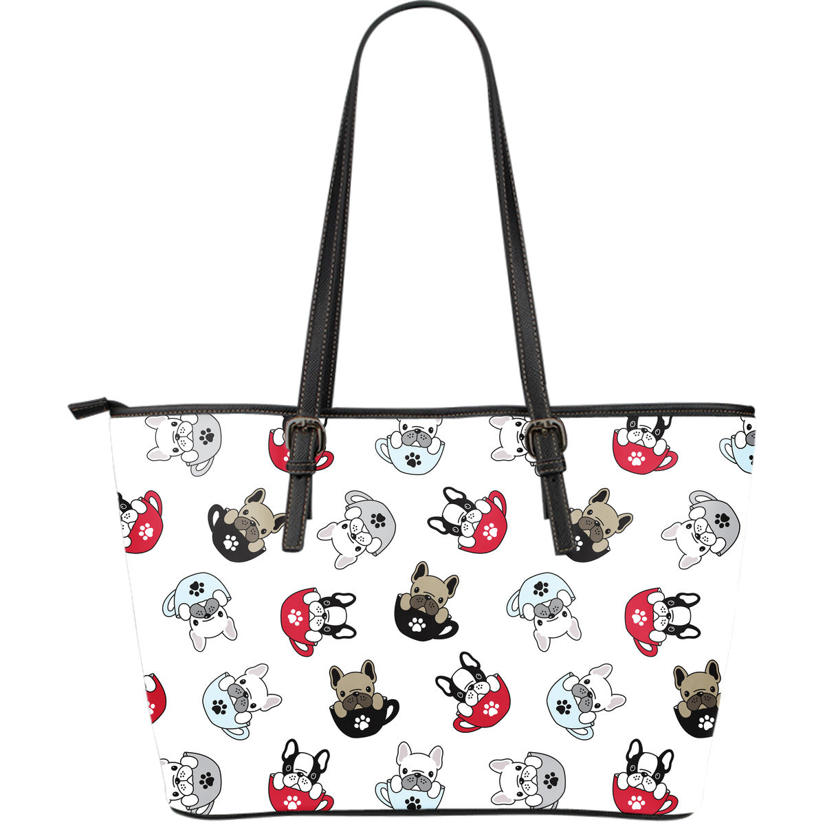 French bulldog cup paw pattern Large Leather Tote Bag is a uniqued design and limited item. It made to order, hand printed, and sewn with love in our factory.