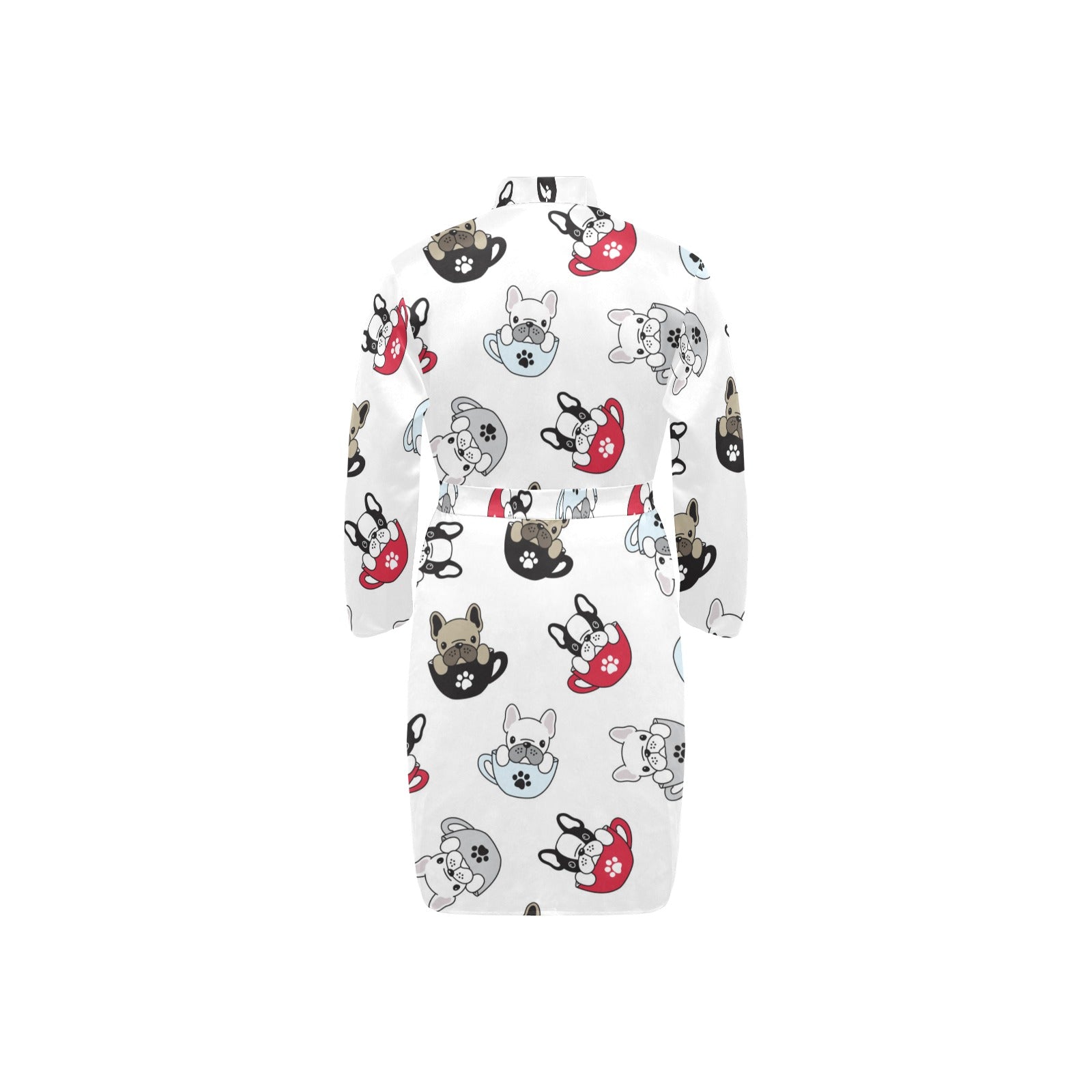 French bulldog cup paw pattern Men's Long Sleeve Belted Night Robe