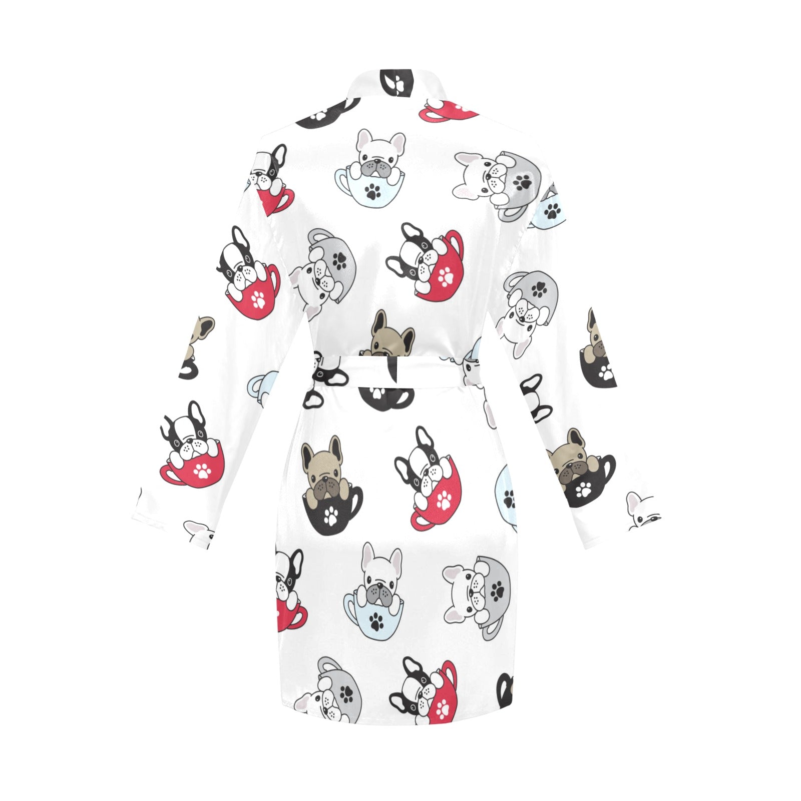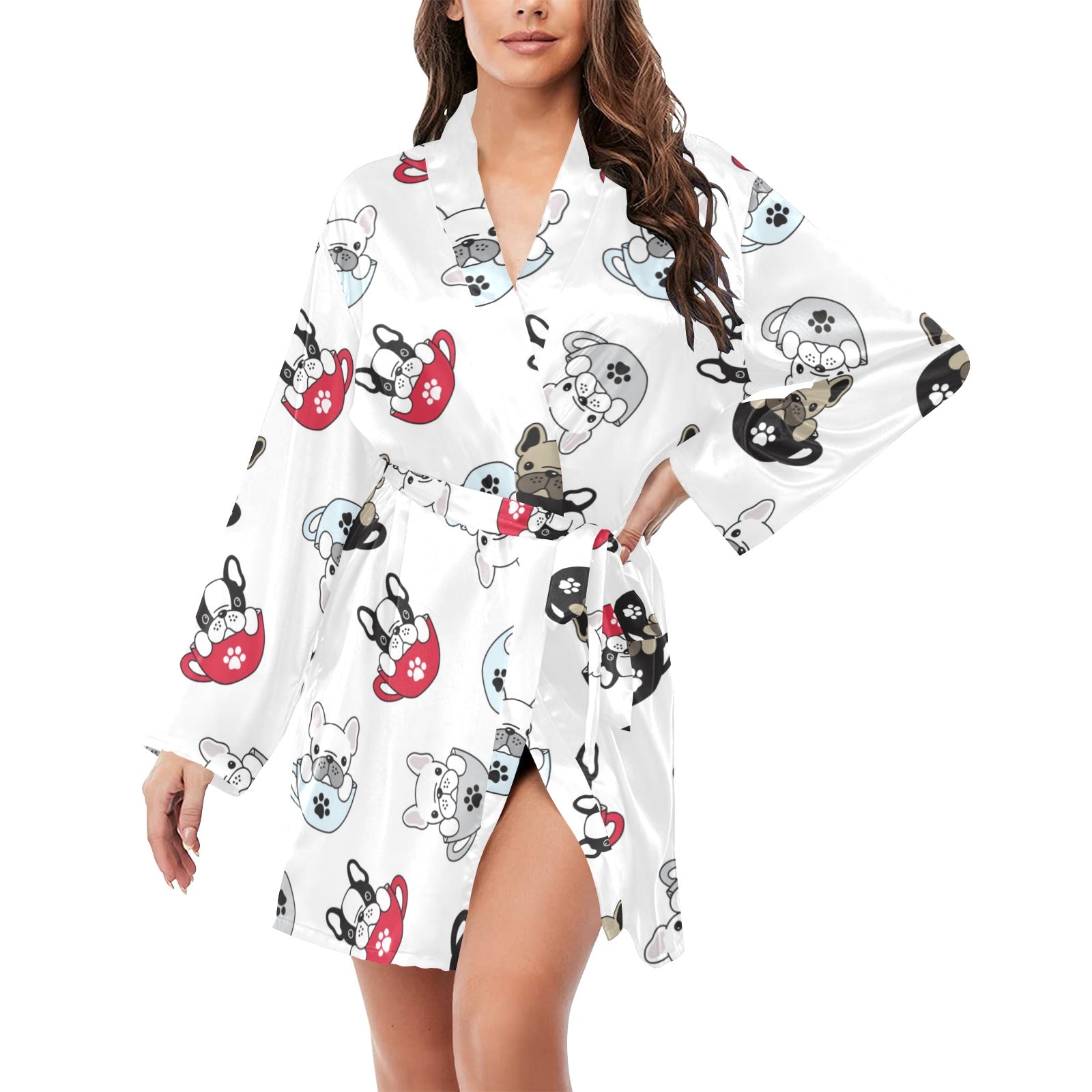 French bulldog cup paw pattern Women's Long Sleeve Belted Night Robe