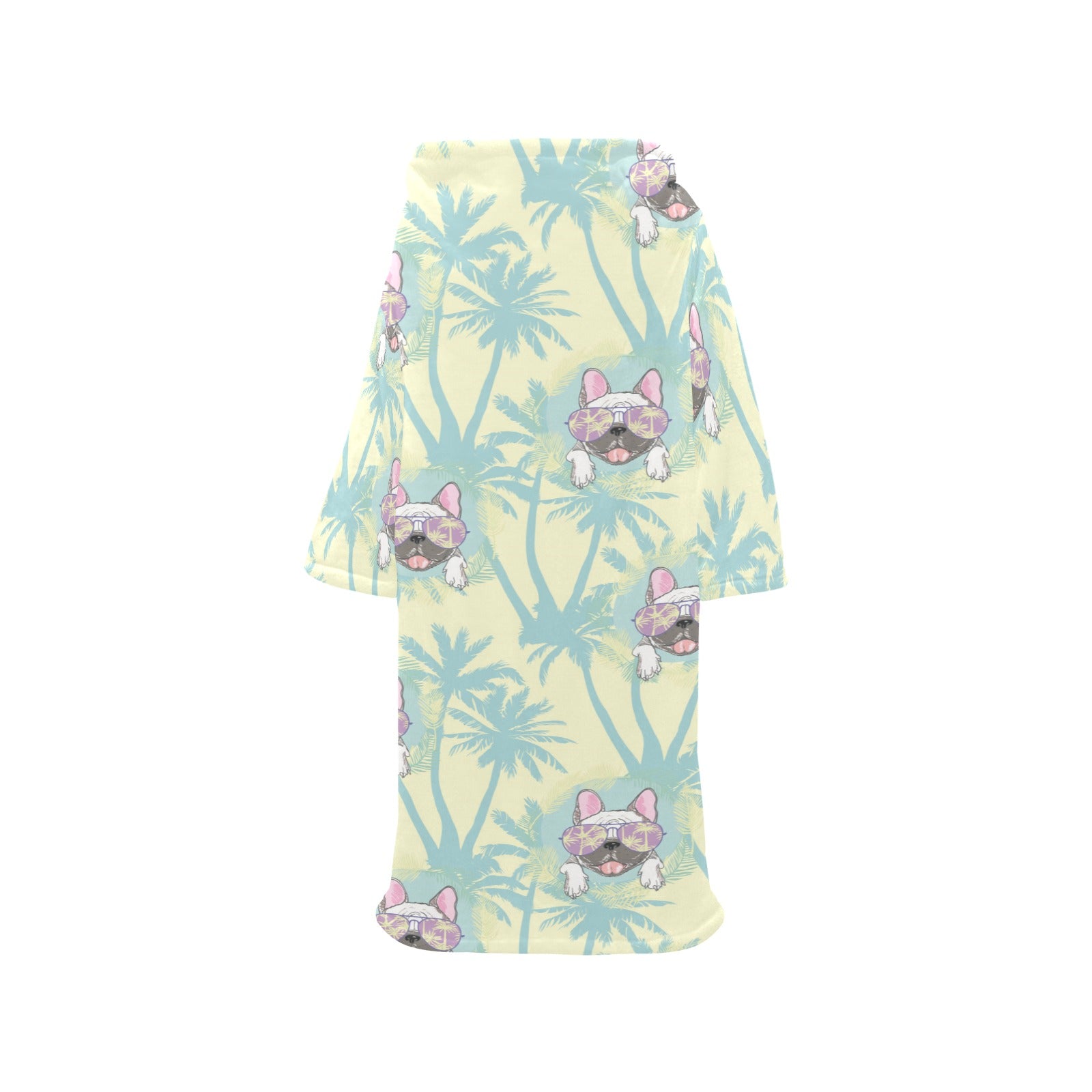 French bulldog hawaii blackground Blanket Robe with Sleeves
