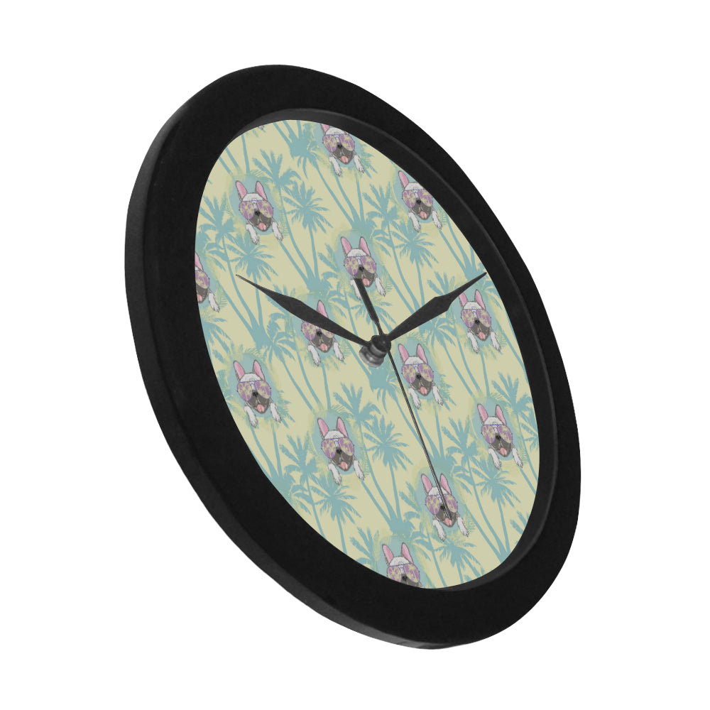 French bulldog hawaii blackground Elegant Black Wall Clock
